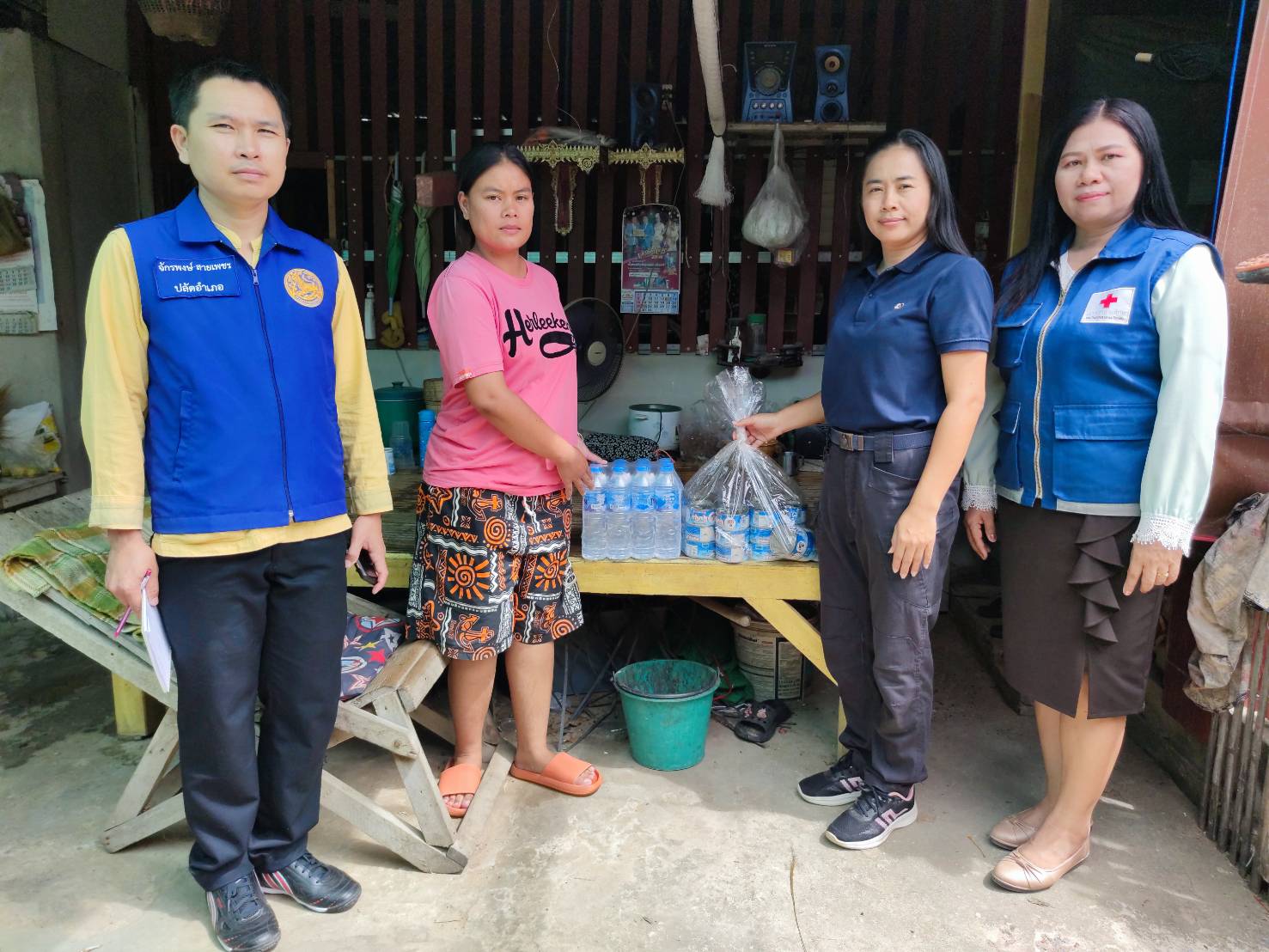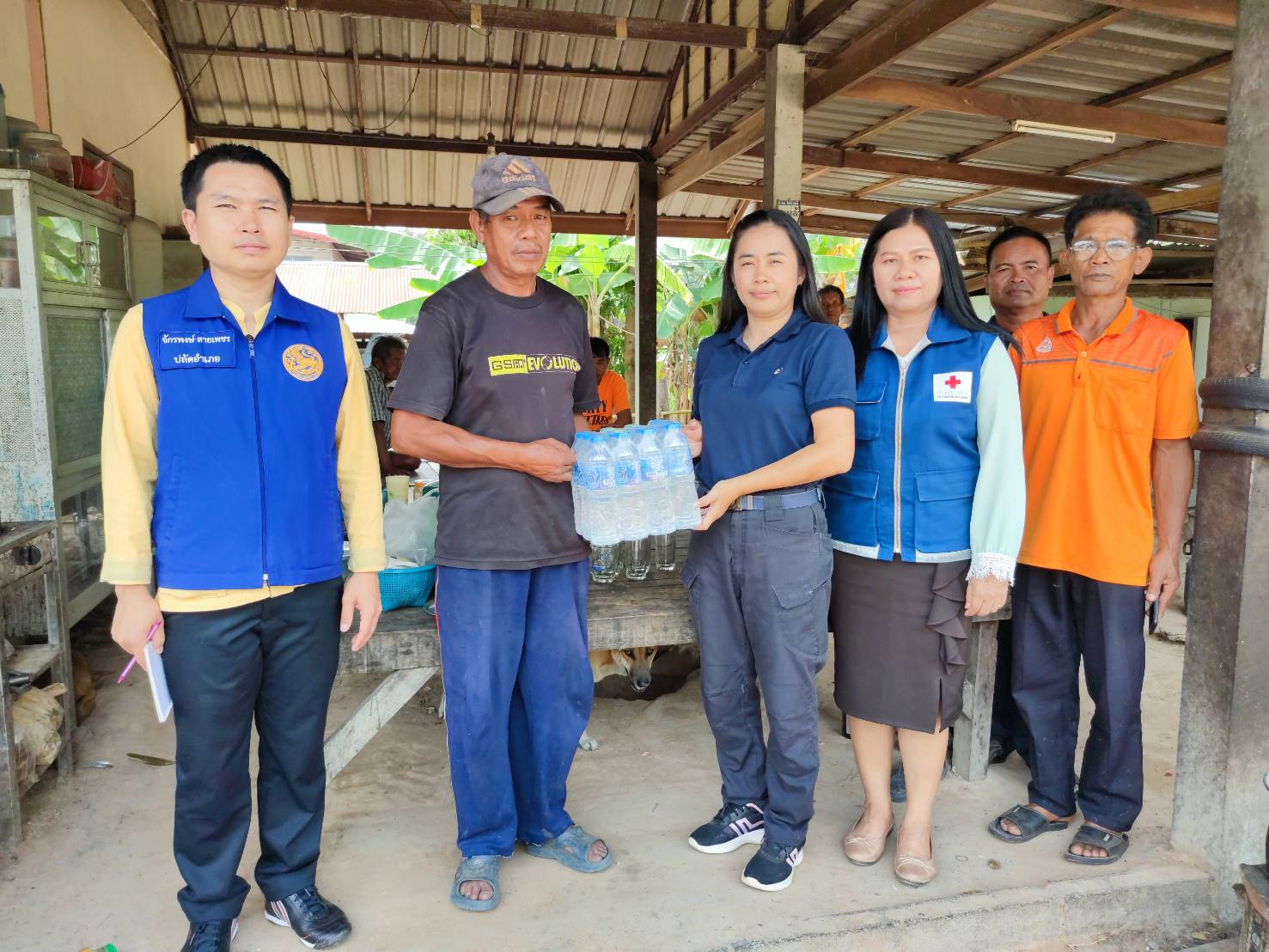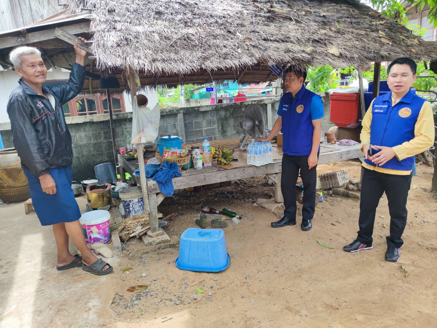 โดยมี กำนัน ผู้ใหญ่บ้าน ฯลฯ ในพื้นที่ร่วมเยี่ยมและมอบสิ่งของให้กำลังใจในครั้งนี้ด้วย