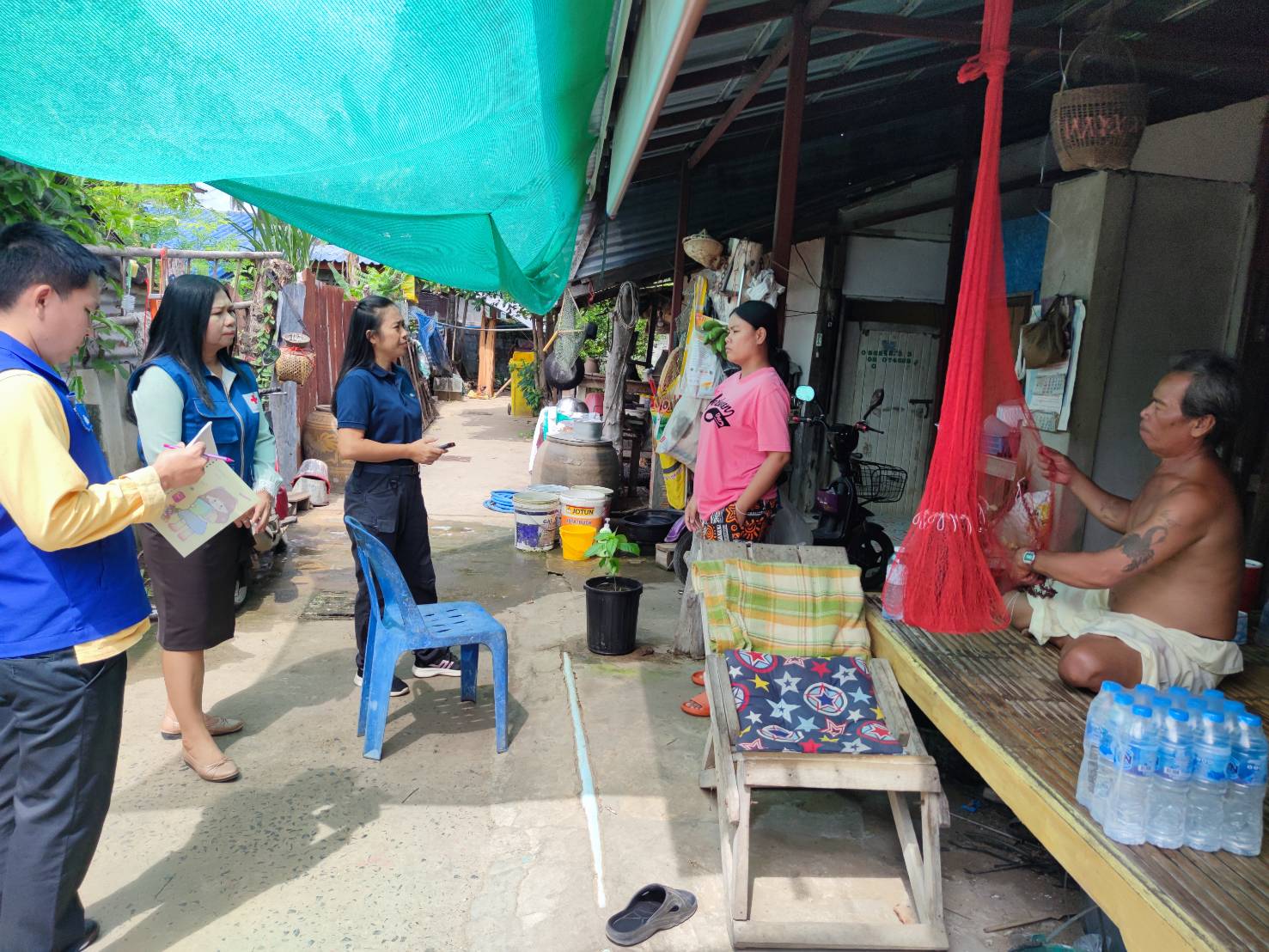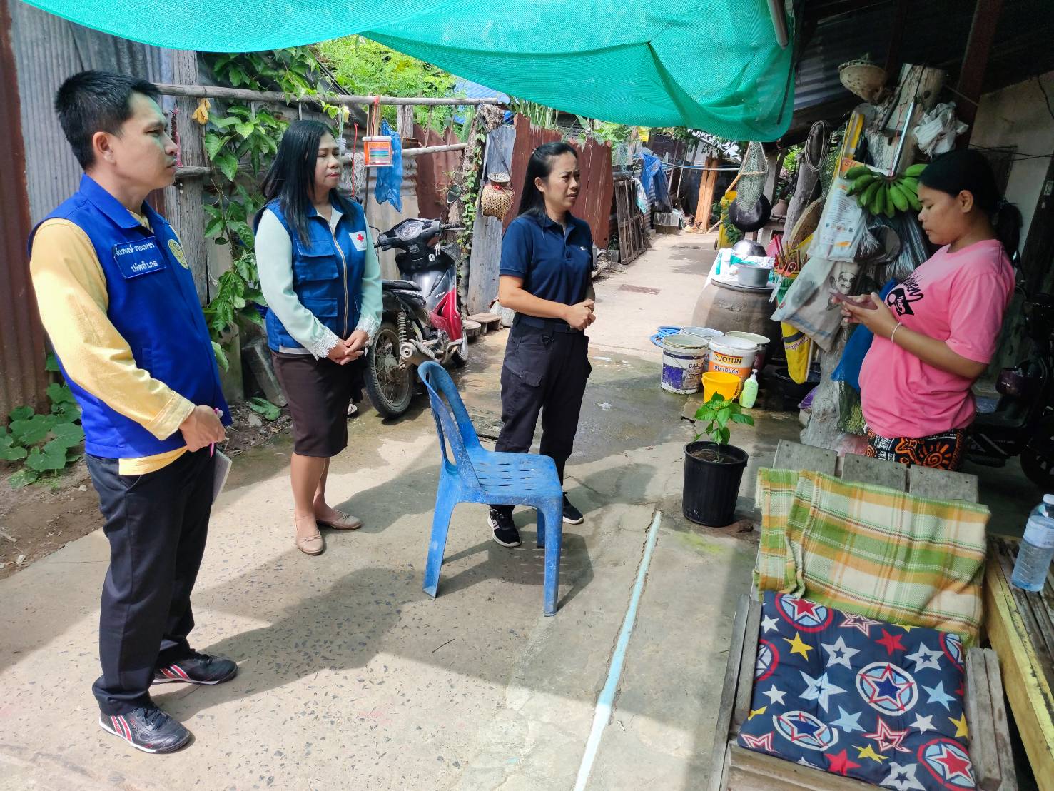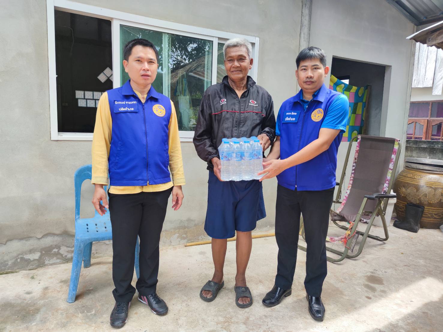 โดยมี กำนัน ผู้ใหญ่บ้าน ฯลฯ ในพื้นที่ร่วมเยี่ยมและมอบสิ่งของให้กำลังใจในครั้งนี้ด้วย
