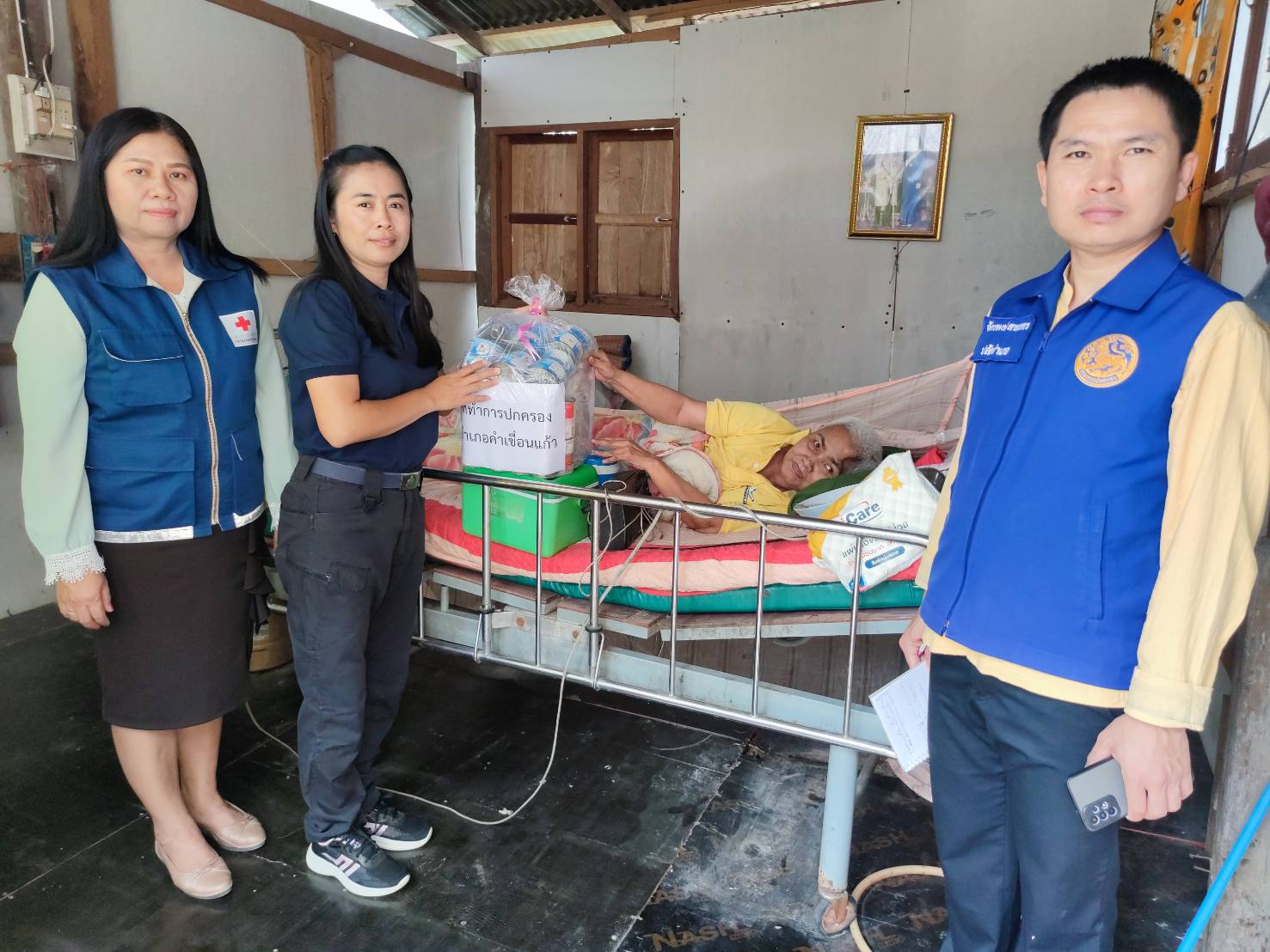 ในการนี้ ได้เยี่ยมให้กำลังใจและมอบสิ่งของให้แก่ผู้เปราะบาง/ป่วยติดเตียงในพื้นที่ตำบลลุมพุก จำนวน ๑ ราย