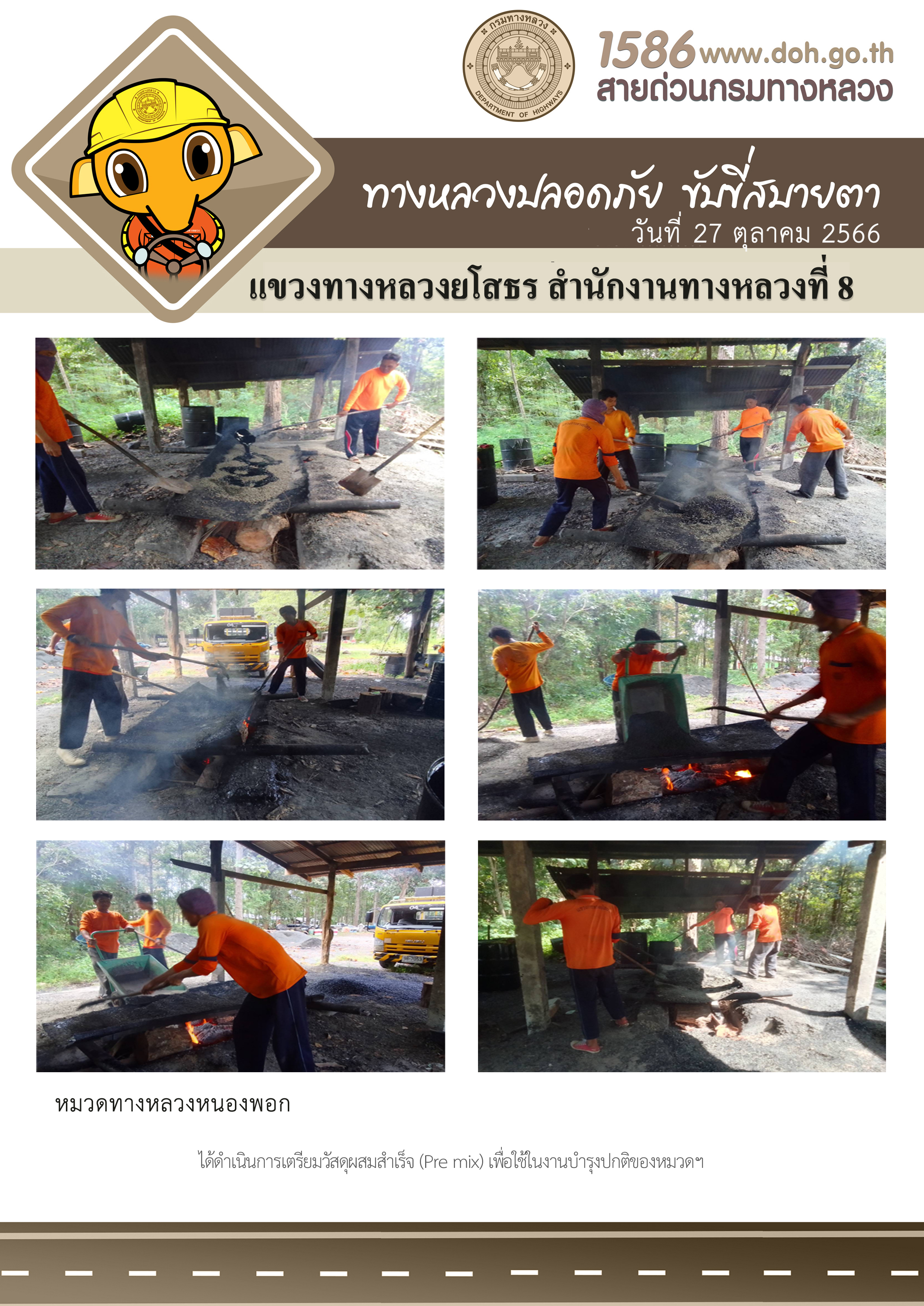 วันที่ 27 ตุลาคม 2566 หมวดทางหลวงหนองพอก ได้ดำเนินการเตรียมวัสดุผสมสำเร็จ (Pre mix) เพื่อใช้ในงานบำรุงปกติของหมวดฯ