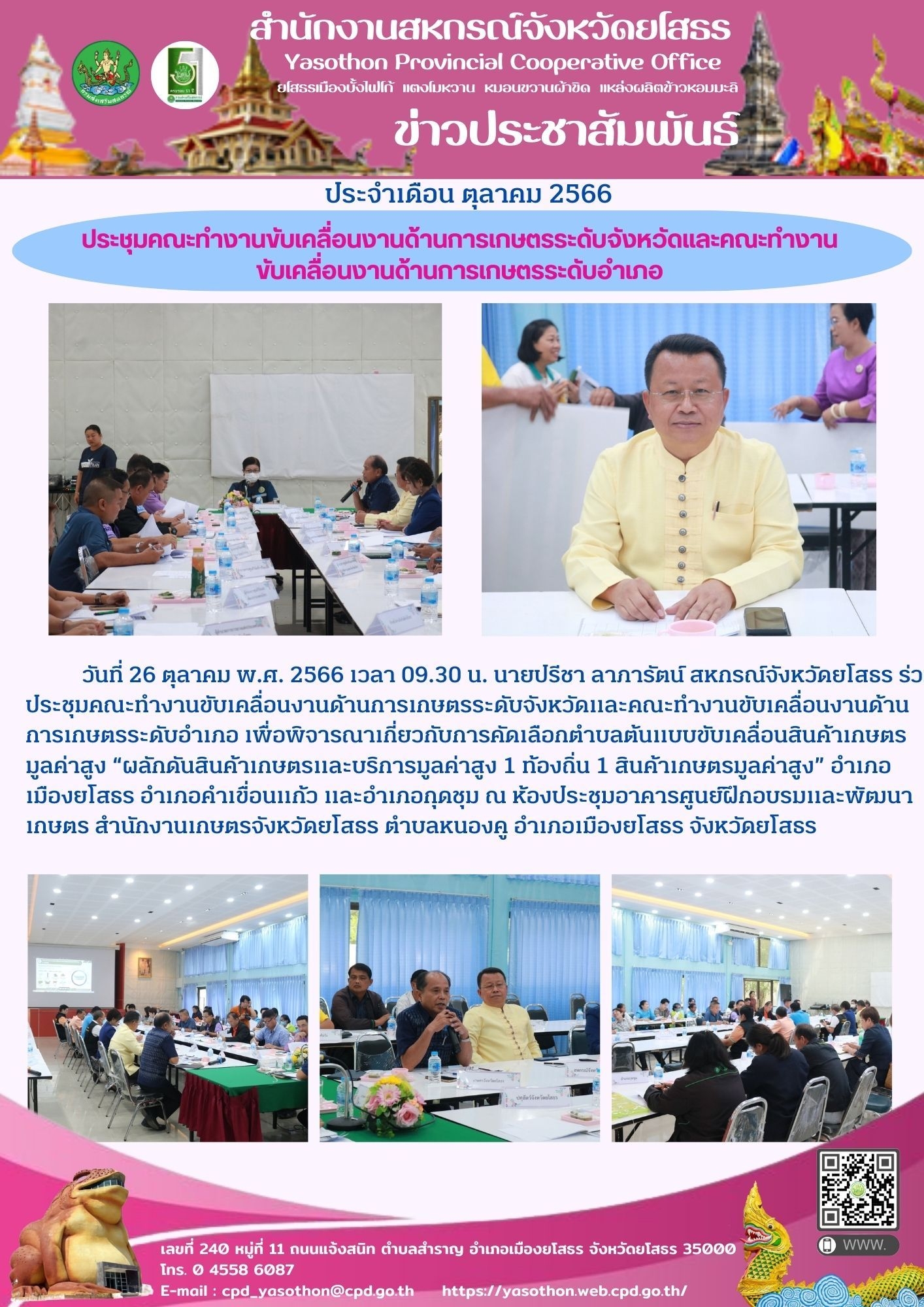 นายปรีชา ลาภารัตน์ สหกรณ์จังหวัดยโสธร ร่วมประชุมคณะทำงานขับเคลื่อนงานด้านการเกษตรระดับจังหวัดและคณะทำงานขับเคลื่อนงานด้านการเกษตรอำเภอ ณ สำนักงานเกษตรจังหวัดยโสธร