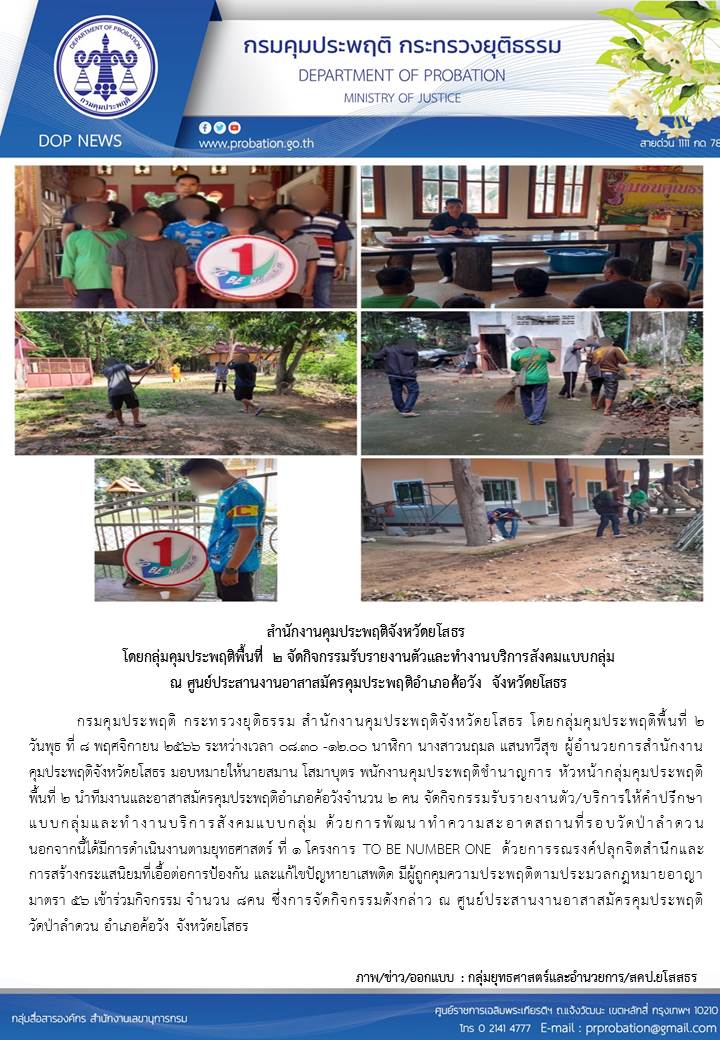 ผู้โพสต์ : [สำนักงานคุมประพฤติจังหวัดยโสธร] ทั่วไป