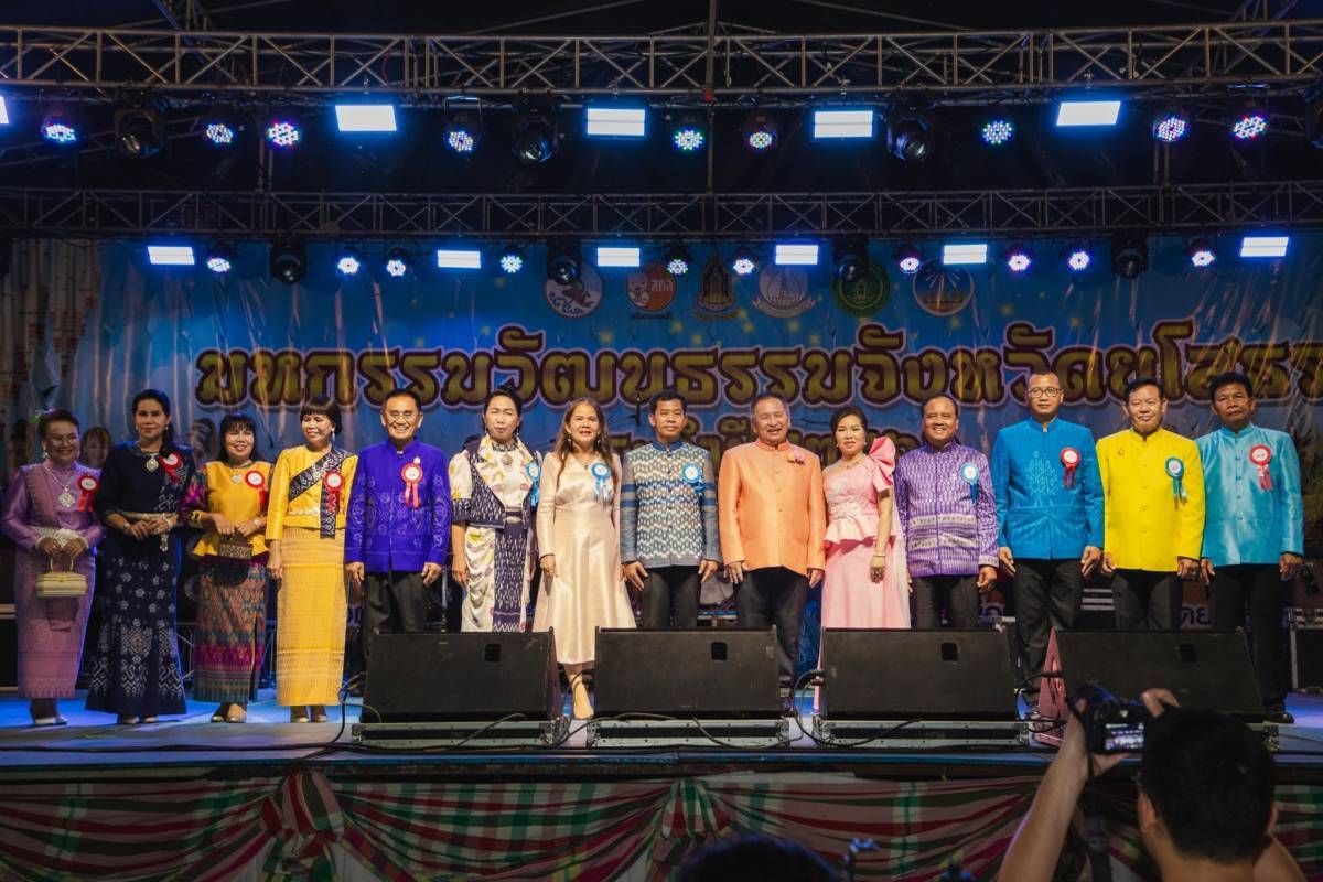 วันที่ 10 พ.ย. 2566 (11:46 น.)วันพฤหัสบดีที่ ๙ พฤศจิกายน ๒๕๖๖ เวลา ๒๐.๓๐ น นายบรรลือ สัมฤทธิ์จินตนา ปลัดจังหวัดยโสธร เป็นประธานในพิธีเปิดงานการเดินแบบชุดผ้าไทยในงานมหกรรมวัฒนธรรม ประจำปี ๒๕๖๖ โดยมีนางจันทพรรณ สัมฤทธิ์จินตนา รองนายกเหล่ากาชาดจังหวัดยโสธร นายวีระวัฒน์ เถระวัลย์ หัวหน้าสำนักงานจังหวัดยโสธร ดร.ประยงค์ แก่นลา ประธานสภาวัฒนธรรมจังหวัดยโสธร นางสาววาสนา ไชยพรรณา วัฒนธรรมจังหวัดยโสธร หัวหน้าส่วนราชการ ผู้แทนนายอำเภอทุกอำเภอ และสภาวัฒนธรรมอำเภอทุกอำเภอ ร่วมเป็นเกียรติในพิธี ณ บริเวณหน้าที่ว่าการอำเภอเมืองยโสธร ตำบลในเมือง อำเภอเมืองยโสธร จังหวัดยโสธร