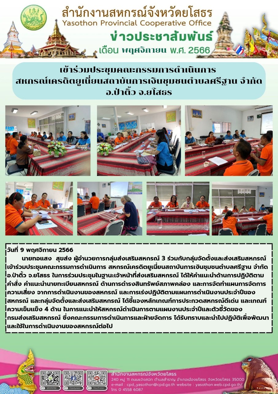 ผู้โพสต์ : [สำนักงานสหกรณ์จังหวัดยโสธร] ทั่วไป