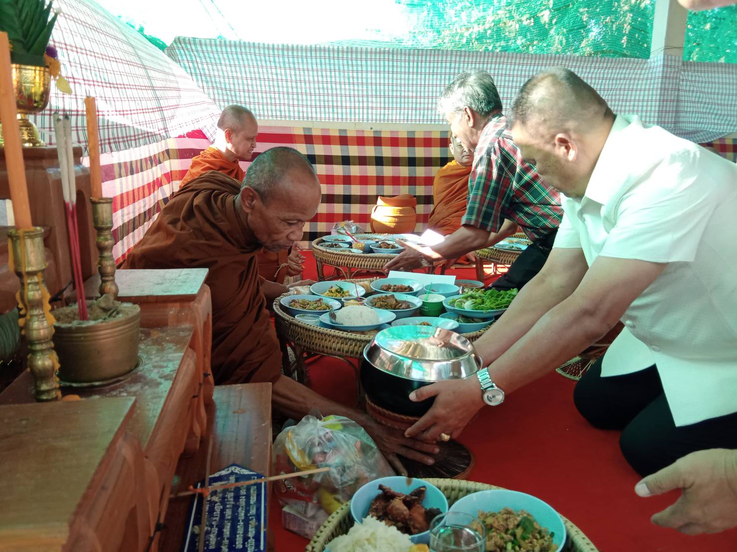 นายอำเภอมหาชนะชัย ร่วมพิธีทำบุญตักบาตร ณ มณฑปหลวงปู่โฮม บ้านโนนทราย หมู่ที่ 7 ตำบลโนนทราย อำเภอมหาชนะชัย