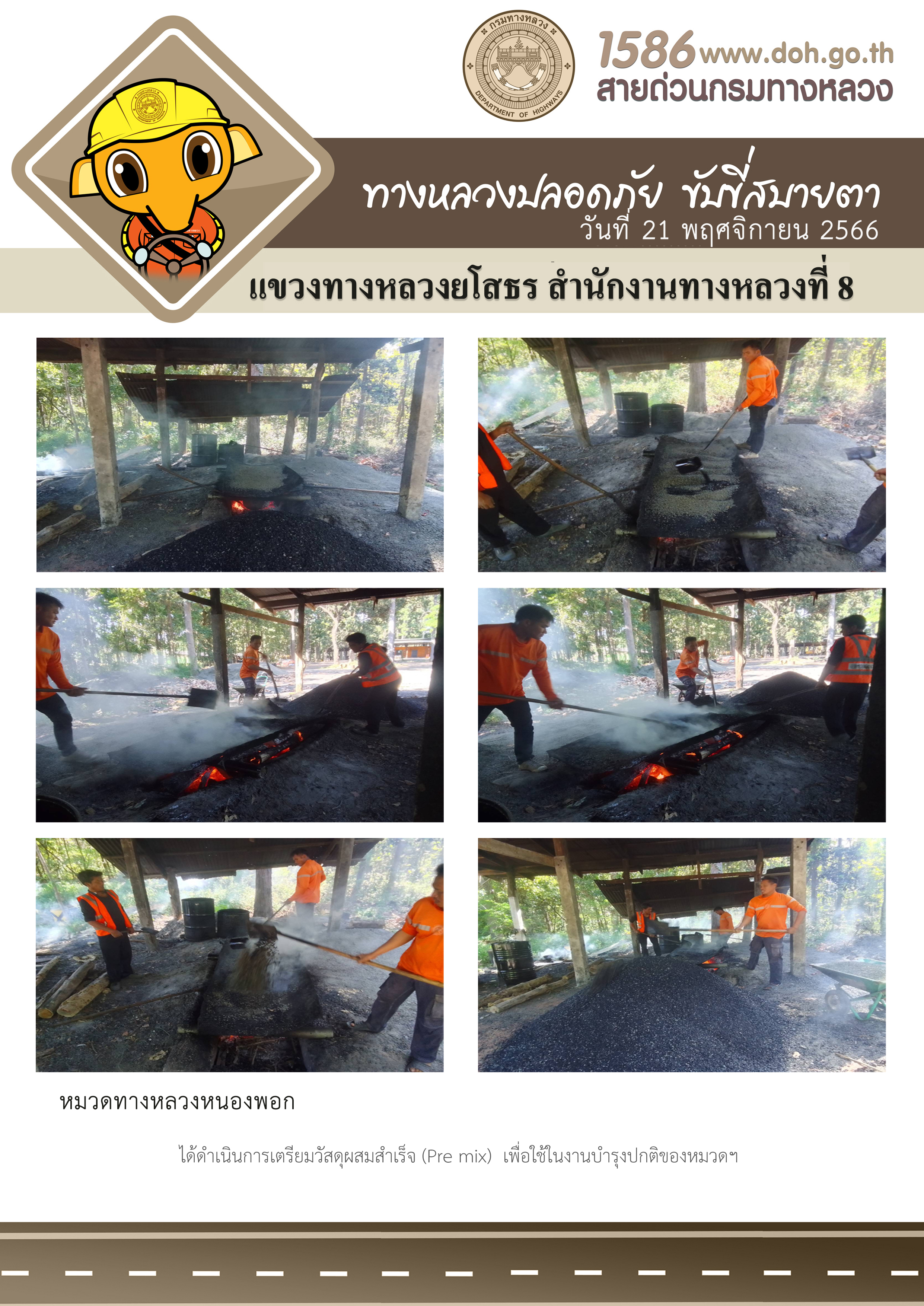 วันที่ 21 พฤศจิกายน 2566 หมวดทางหลวงหนองพอก ได้ดำเนินการเตรียมวัสดุผสมสำเร็จ (Pre mix) เพื่อใช้ในงานบำรุงปกติของหมวดฯ