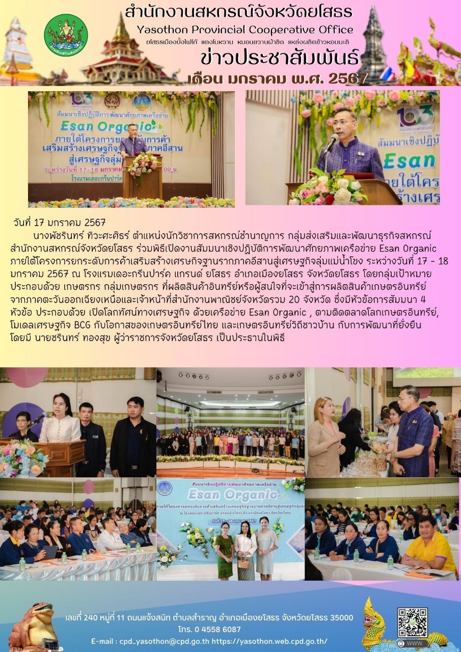ผู้โพสต์ : [สำนักงานสหกรณ์จังหวัดยโสธร] ทั่วไป