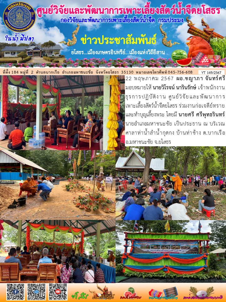 ผู้โพสต์ : [ศูนย์วิจัยและพัฒนาการเพาะเลี้ยงสัตว์น้ำจืดยโสธร] ทั่วไป