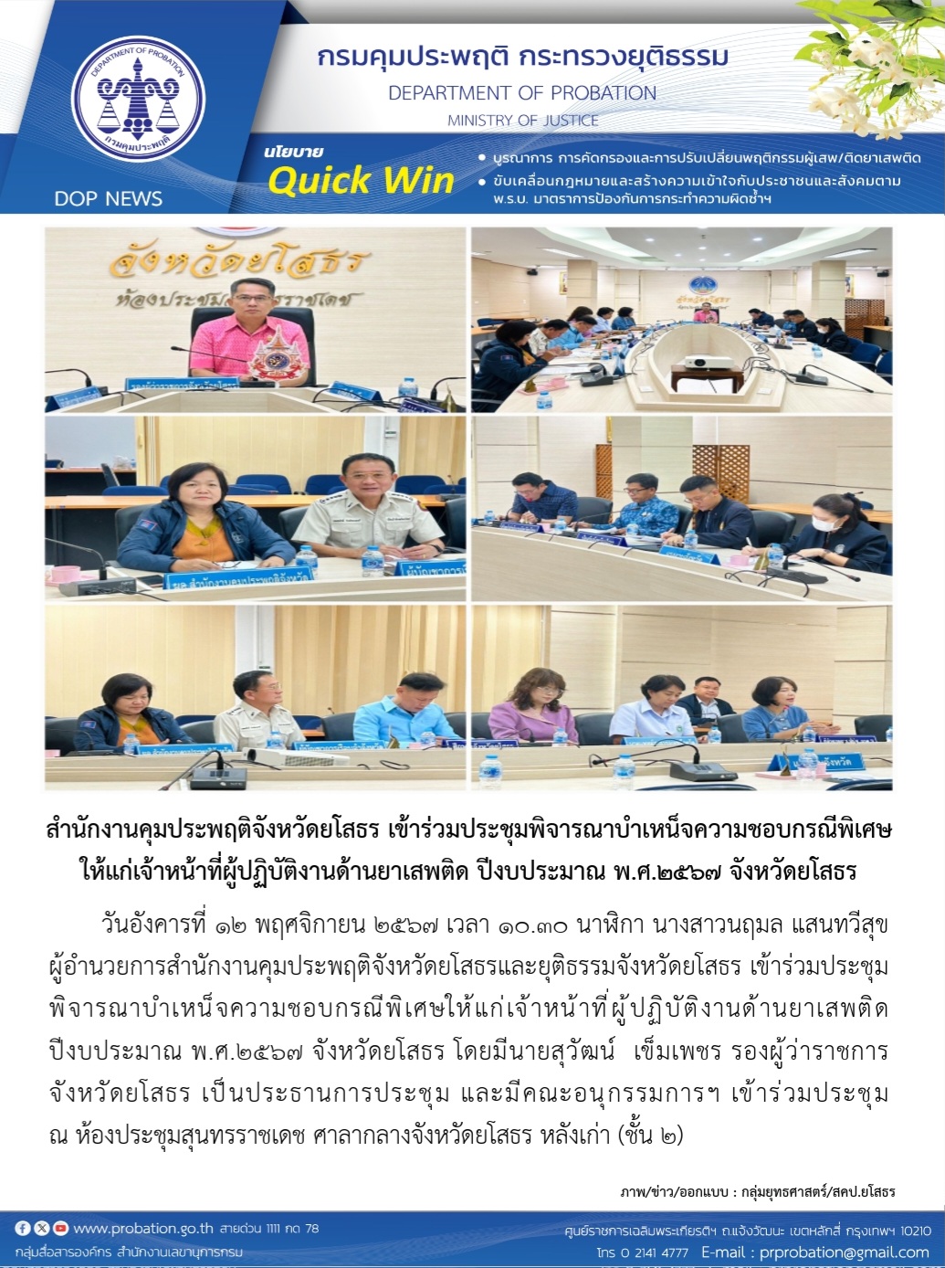 ผู้โพสต์ : [สำนักงานคุมประพฤติจังหวัดยโสธร] ทั่วไป