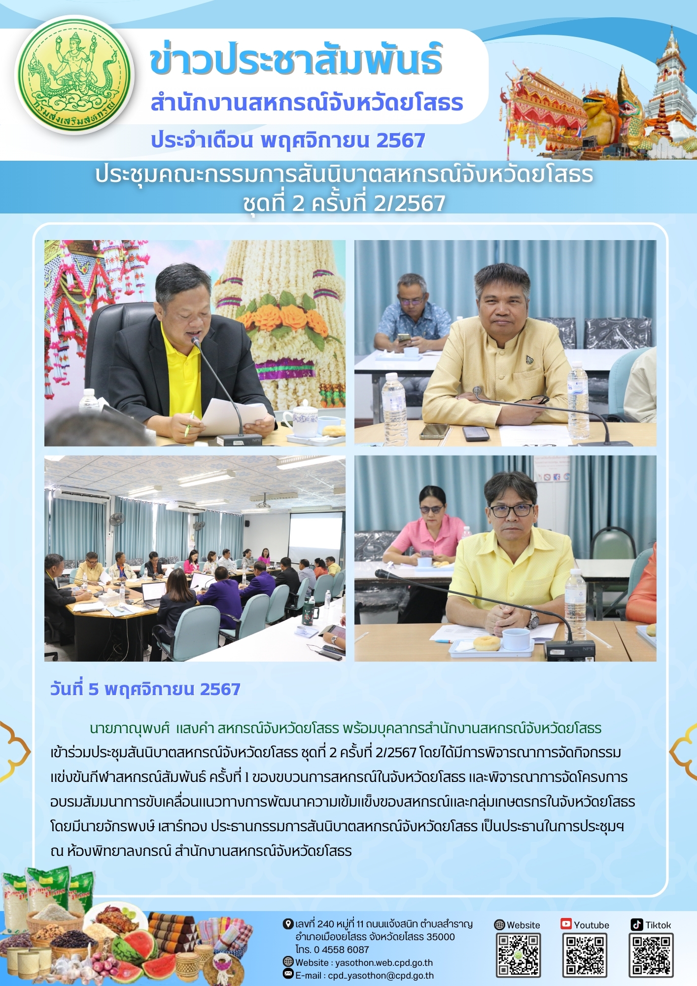 นายภาณุพงศ์ แสงคำ สหกรณ์จังหวัดยโสธร พร้อมด้วยบุคลากรสำนักงานสหกรณ์จังหวัดยโสธร เข้าร่วมประชุมสันนิบาตสหกรณ์จังหวัดยโสธร ชุดที่ 2 ครั้งที่ 2/2567