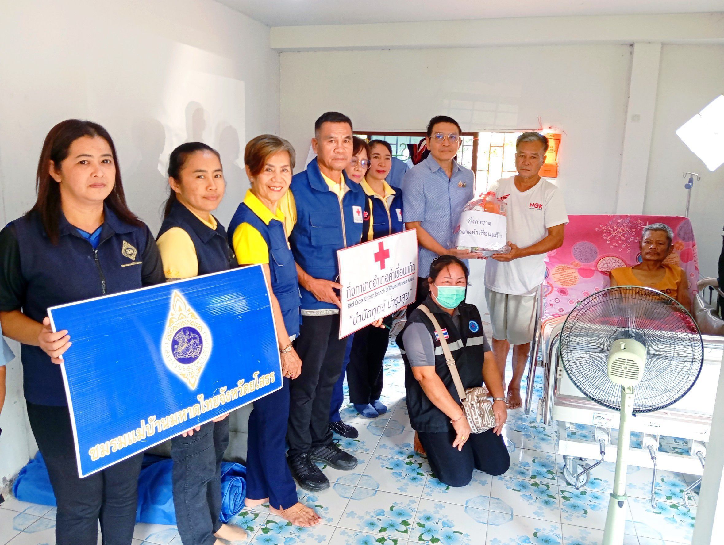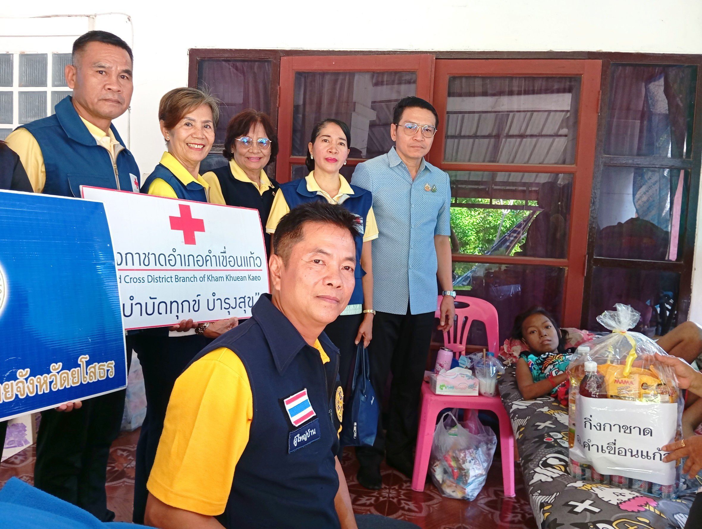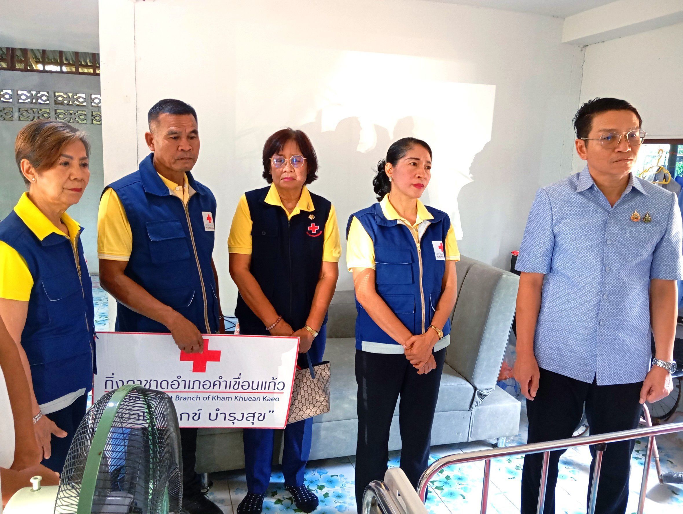 โดยมี คณะกรรมการกิ่งกาชาดอำเภอคำเขื่อนแก้ว ปลัดอำเภอ สมาชิกแม่บ้านมหาดไทยอำเภอคำเขื่อนแก้ว ผู้ใหญ่บ้าน อาสาสมัครสาธารณสุขประจำหมู่บ้าน (อสม.) ร่วมลงพื้นที่ในครั้งนี้ด้วย