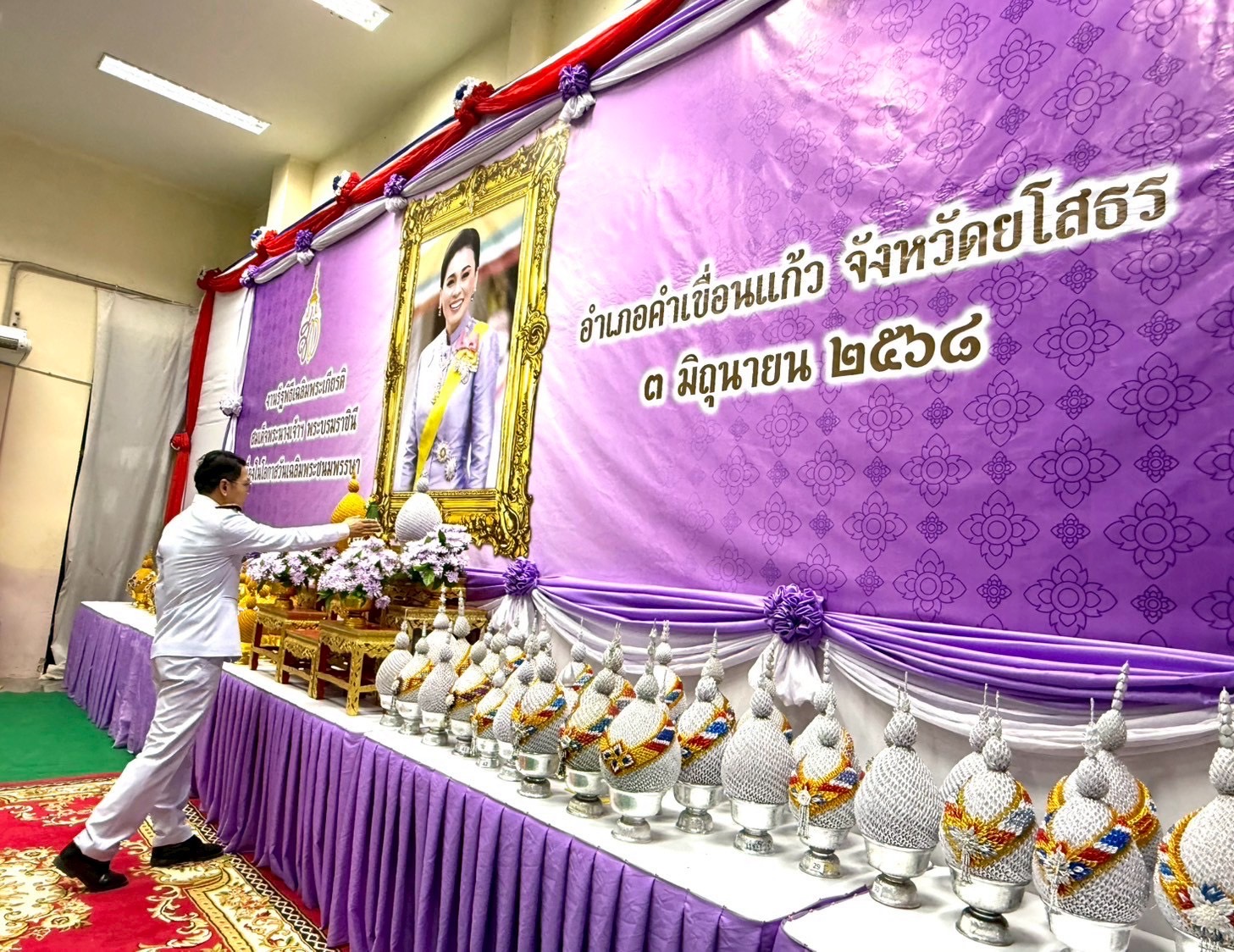วันที่ 12 มิ.ย. 2568 (13:31 น.)วันที่ 3 มิถุนายน 2568 เวลา 17.30 น.เป็นต้นไป พ.จ.อ.อนุสิทธิ์ บัวหุ่ง นายอำเภอคำเขื่อนแก้ว เป็นประธานในพิธีถวายเครื่องราชสักการะและวางพานพุ่ม และพิธีจุดเทียนถวายพระพรชัยมงคล เฉลิมพระเกียรติสมเด็จพระนางเจ้าฯ พระบรมราชินี เนื่องในโอกาสวันเฉลิมพระชนมพรรษา 3 มิถุนายน 2568