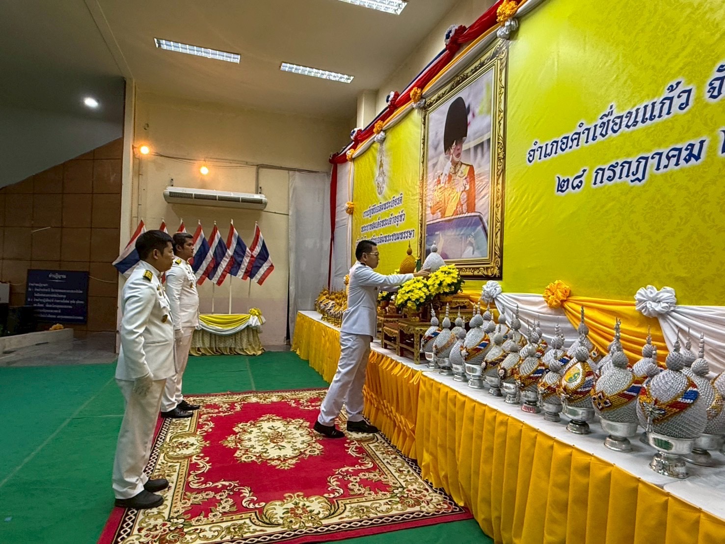 วันที่ 6 ส.ค. 2568 (15:32 น.)วันที่ 28 กรกฎาคม 2568 เวลา 17.30 น. พ.จ.อ.อนุสิทธิ์ บัวหุ่ง นายอำเภอคำเขื่อนแก้ว เป็นประธานในพิธีถวายเครื่องราชสักการะและวางพานพุ่ม และจุดเทียนถวายพระพรชัยมงคล เฉลิมพระเกียรติพระบาทสมเด็จพระเจ้าอยู่หัว เนื่องในโอกาสพระราชพิธีมหามงคลเฉลิมพระชนมพรรษา 28 กรกฎาคม 2568 โดยมีนายบุญแก้ว สมวงศ์ สมาชิกสภาผู้แทนราษฎรจังหวัดยโสธร เขต 2 นางจุฑารัตน์ บัวหุ่ง นายกกิ่งกาชาดอำเภอคำเขื่อนแก้ว ปลัดอำเภอ สมาชิกสภาองค์การบริหารส่วนจังหวัดยโสธร อำเภอคำเขื่อนแก้ว หัวหน้าส่วนราชการ หัวหน้าหน่วยงานรัฐวิสาหกิจ ผู้บริหารองค์กรปกครองส่วนท้องถิ่น ผู้บริหารสถานศึกษา ข้าราชการ คณะกรรมการกิ่งกาชาดอำเภอ กำนัน ผู้ใหญ่บ้านฯลฯ จิตอาสาพระราชทาน และประชาชนชาวอำเภอคำเขื่อนแก้วเข้าร่วมพิธี ณ หอประชุม 100 ปี อำเภอคำเขื่อนแก้ว จังหวัดยโสธร