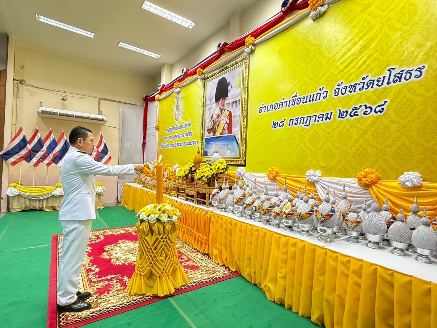 พิธีถวายเครื่องราชสักการะและวางพานพุ่ม และจุดเทียนถวายพระพรชัยมงคล เฉลิมพระเกียรติพระบาทสมเด็จพระเจ้าอยู่หัว เนื่องในโอกาสพระราชพิธีมหามงคลเฉลิมพระชนมพรรษา 28 กรกฎาคม 2568
