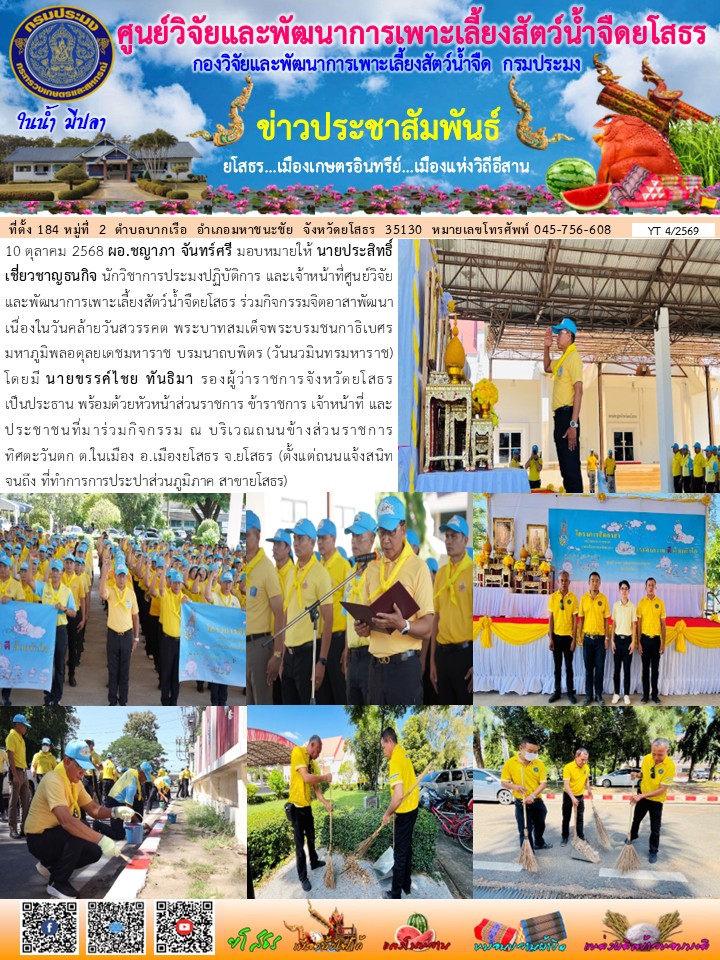 เจ้าหน้าที่ศูนย์วิจัยและพัฒนาการเพาะเลี้ยงสัตว์น้ำจืดยโสธร ร่วมกิจกรรมจิตอาสาพัฒนา เนื่องในวันคล้ายวันสวรรคต พระบาทสมเด็จพระบรมชนกาธิเบศร มหาภูมิพลอดุลยเดชมหาราช บรมนาถบพิตร (วันนวมินทรมหาราช)