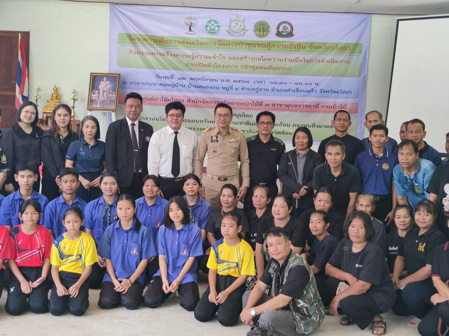 วันที่ 13 พ.ย. 2568 (14:41 น.)วันที่ 12 พฤศจิกายน 2568 เวลา 09.30 น. พ.จ.อ.อนุสิทธิ์ บัวหุ่ง นายอำเภอคำเขื่อนแก้ว เป็นประธานในพิธีเปิดโครงการเพื่อการส่งเสริมการจัดการป่าชุมชนสู่ความยั่งยืน (ป่าชุมชนต้นแบบ) จังหวัดยโสธร ณ ศาลาประชาคมบ้านหนองกบ หมู่ที่ 4 ตำบลกู่จาน อำเภอคำเขื่อนแก้ว จังหวัดยโสธร โดยมี ผู้อำนวยการสำนักจัดการทรัพยากรป่าไม้ที่ 7 สาขาอุบลราชธานี ผู้อำนวยการศูนย์ป่าไม้ยโสธร ผู้ช่วยประชาสัมพันธ์จังหวัดยโสธร ผู้อำนวยการโรงเรียนกู่จานวิทยาคม ผู้อำนวยการโรงเรียนชุมชนกู่จาน นายกองค์การบริหารส่วนตำบลกู่จาน กำนัน ผู้ใหญ่บ้านฯลฯ ตำบลกู่จาน นักเรียน และประชาชนในพื้นที่เข้าร่วมโครงการฯ