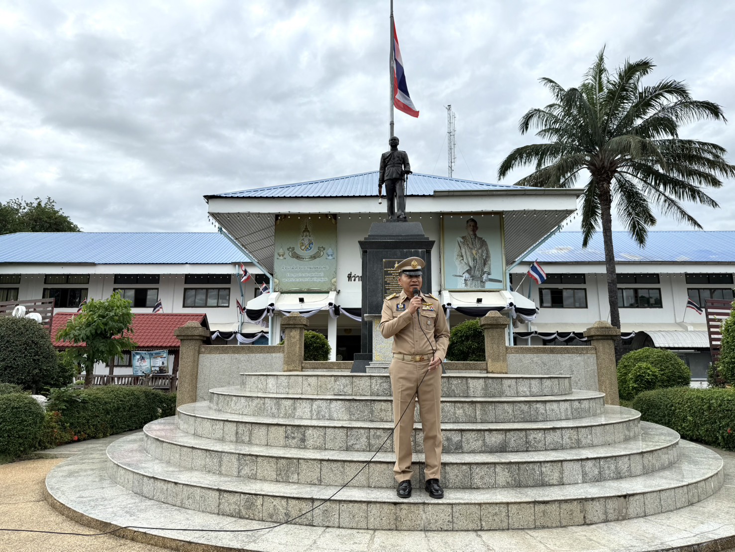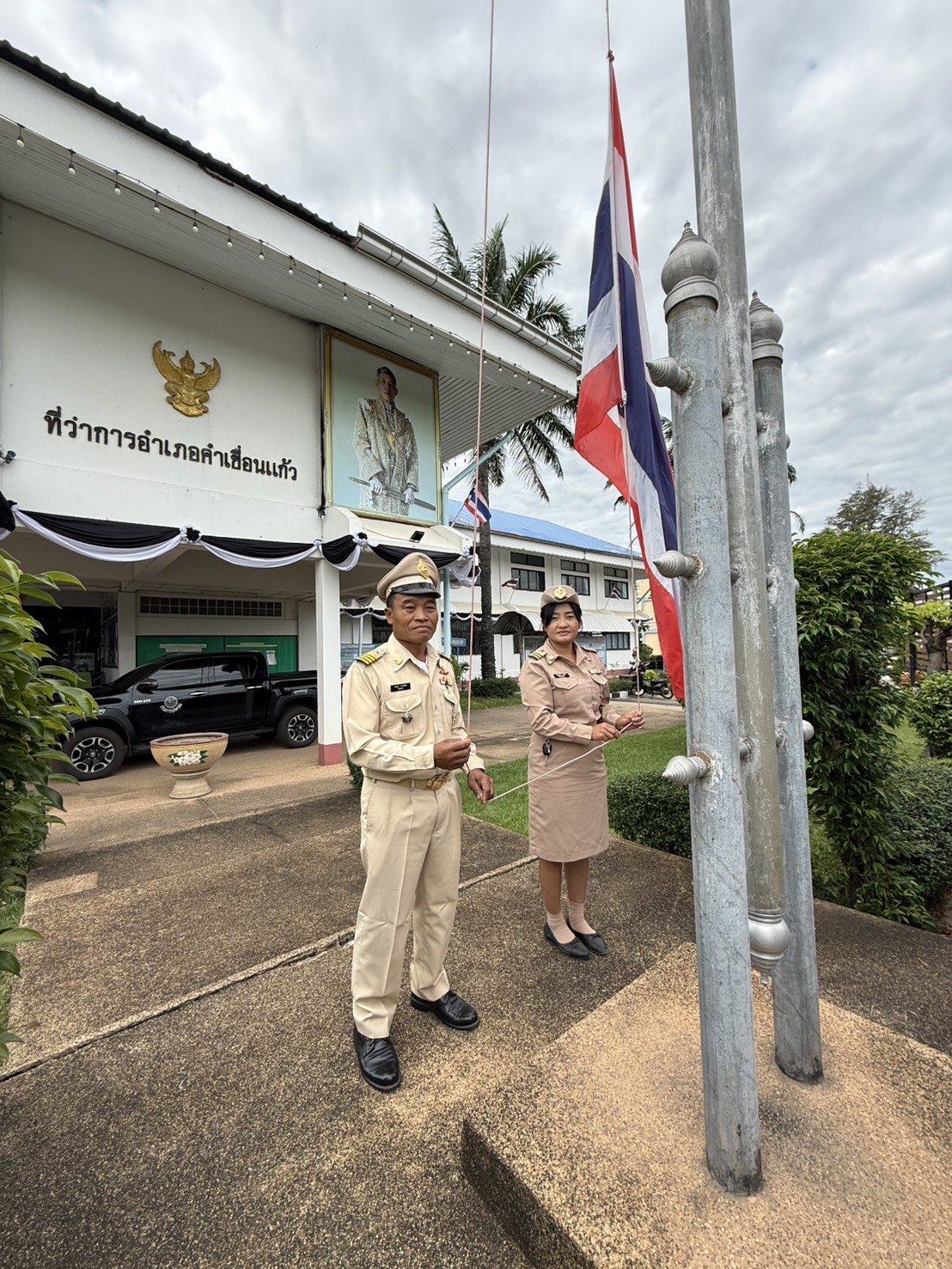 วันที่ 13 พ.ย. 2568 (16:13 น.)วันที่ 5 พฤศจิกายน 2568 เวลา 08.00 น. พ.จ.อ.อนุสิทธิ์ บัวหุ่ง นายอำเภอคำเขื่อนแก้ว นำกำนัน ผู้ใหญ่บ้าน แพทย์ประจำตำบล และผู้ช่วยผู้ใหญ่บ้านฝ่ายปกครอง ร่วมกิจกรรมเข้าแถวเคารพธงชาติ สวดมนต์ไหว้พระ และกล่าวอุดมการณ์รักชาติ ณ บริเวณเสาธง หน้าที่ว่าการอำเภอคำเขื่อนแก้ว จังหวัดยโสธร