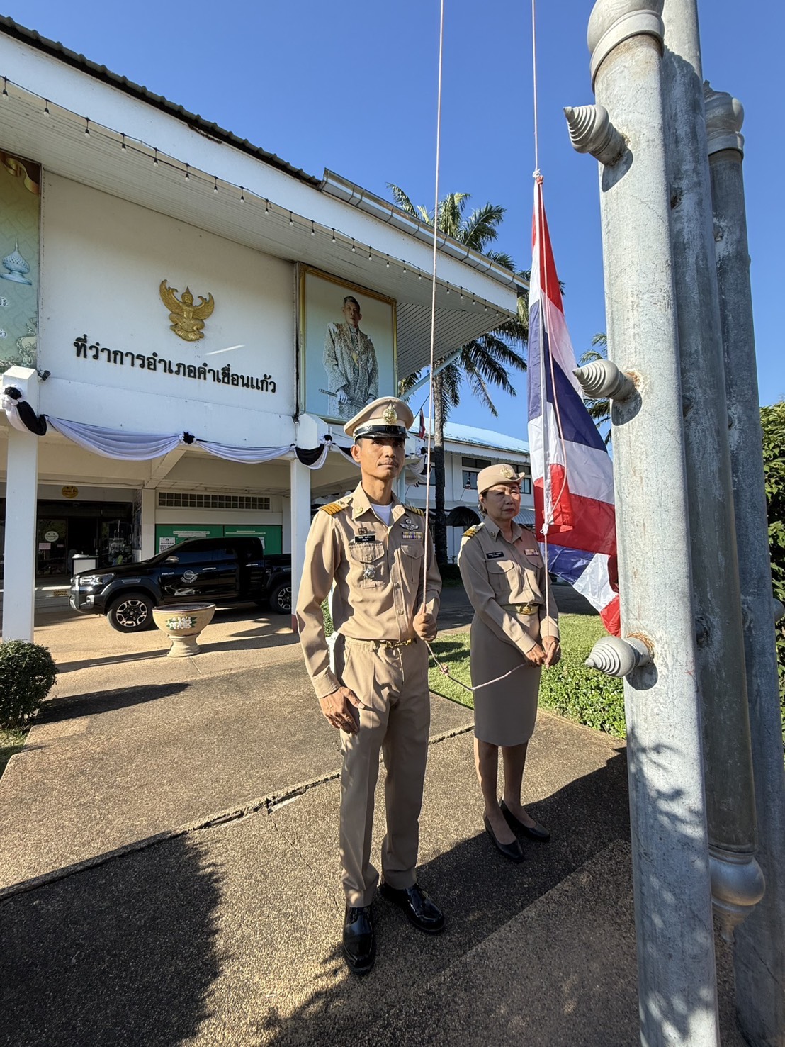 วันที่ 2 ธ.ค. 2568 (15:48 น.)วันที่ 1 ธันวาคม 2568 เวลา 08.00 น. พ.จ.อ.อนุสิทธิ์ บัวหุ่ง นายอำเภอคำเขื่อนแก้ว นำหัวหน้าส่วนราชการ ปลัดอำเภอ ข้าราชการ กำนัน ผู้ใหญ่บ้าน ฯลฯ และสมาชิก อส. ร่วมกิจกรรมเข้าแถวเคารพธงชาติ ประจำเดือนธันวาคม 2568 เพื่อแสดงออกถึงความจงรักภักดีต่อสถาบันชาติ ศาสนา พระมหากษัตริย์ ณ บริเวณหน้าเสาธง ที่ว่าการอำเภอคำเขื่อนแก้ว