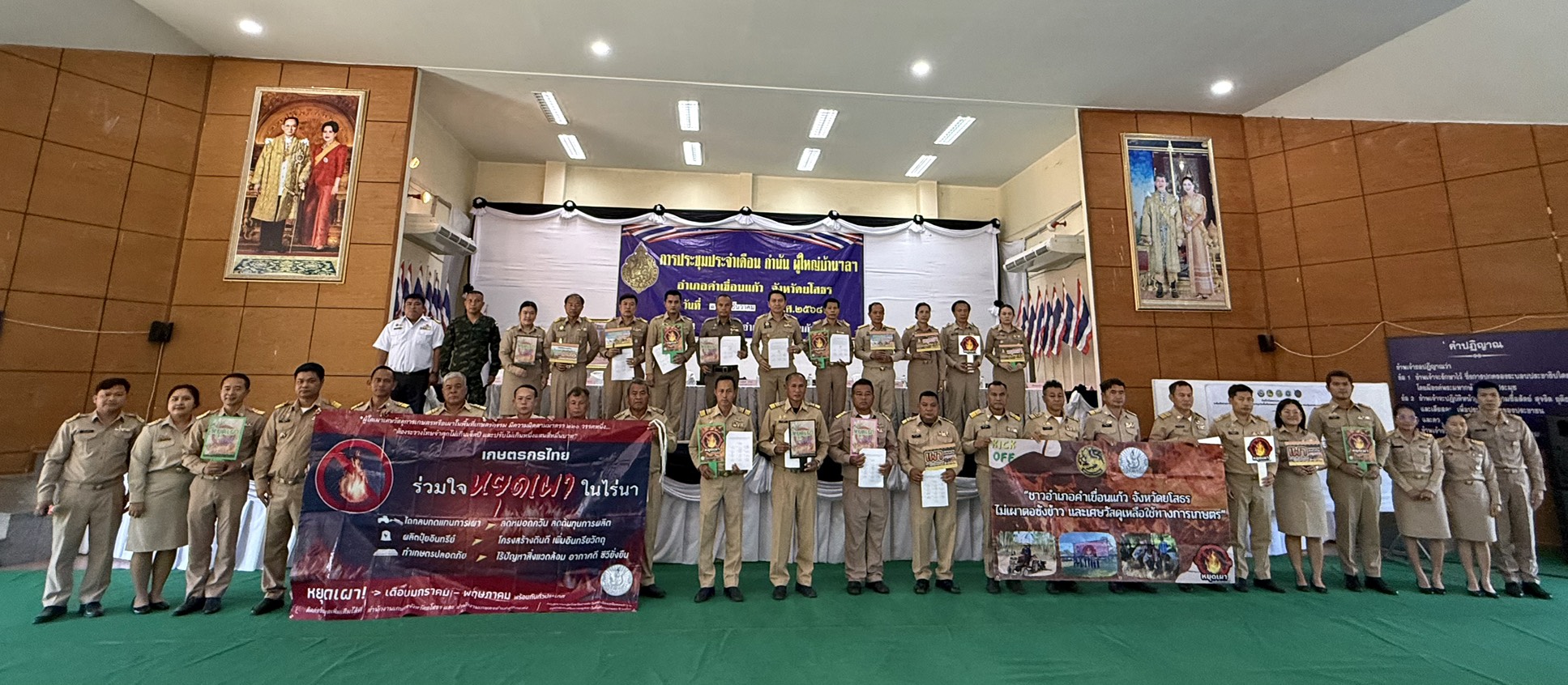ในการนี้ได้มีพิธีลงนามบันทึกข้อตกลงความร่วมมือ MOU เรื่อง การมีส่วนร่วมในการป้องกัน และแก้ไขปัญหาการเผาในพื้นที่เกษตรกรรม พื้นที่โล่ง ไฟป่าหมอกควัน และฝุ่นละอองขนาดเล็ก ระหว่างหัวหน้าส่วนราชการอำเภอคำเขื่อนแก้วและกำนันทุกตำบลในพื้นที่อำเภอคำเขื่อนแก้ว