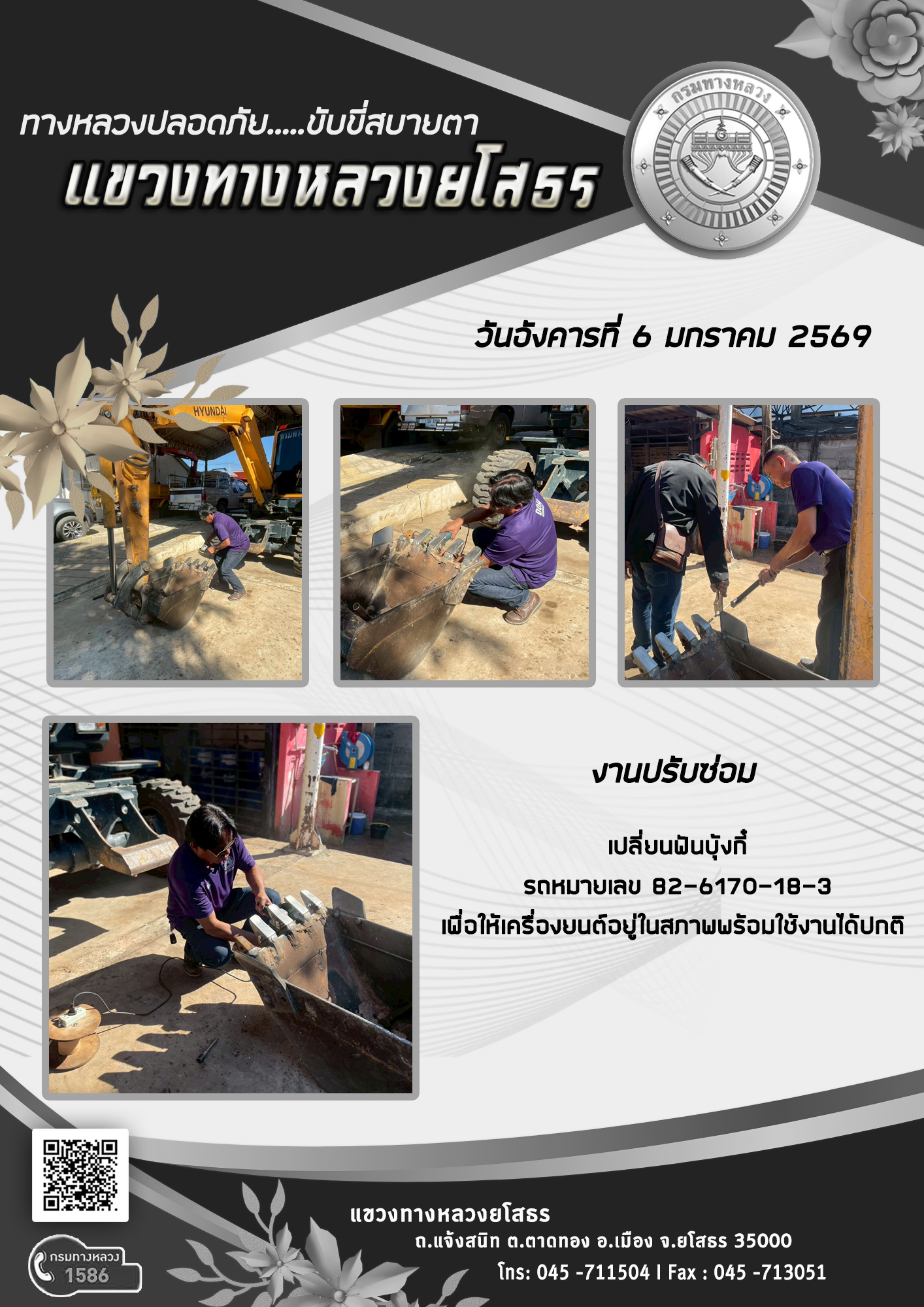 วันอังคารที่ 6 มกราคม 2569 งานปรับซ่อม เปลี่ยนฟันบุ้งกี๋ รถหมายเลข 82-6170-18-3 เพื่อให้เครื่องยนต์อยู่ในสภาพพร้อมใช้งานได้ปกติ