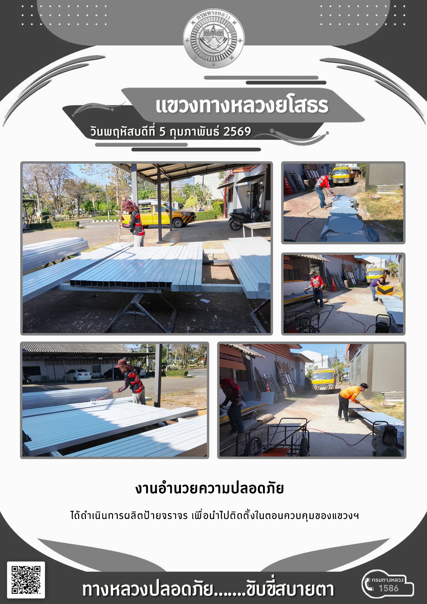 วันพฤหัสบดีที่ 5 กุมภาพันธ์ 2569 งานอำนวยความปลอดภัย ได้ดำเนินการผลิตป้ายจราจร เพื่อนำไปติดตั้งในตอนควบคุมของแขวงฯ