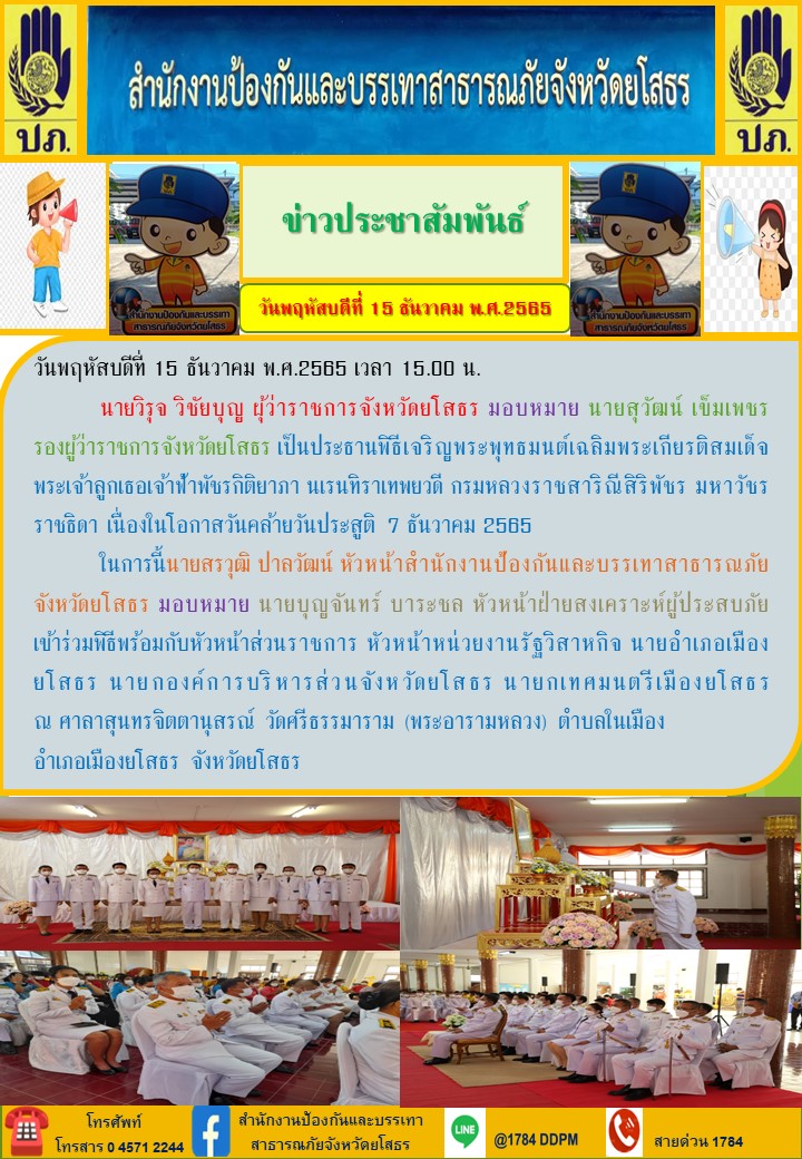ผู้โพสต์ : [สำนักงานป้องกันและบรรเทาสาธารณภัยจังหวัดยโสธร] ทั่วไป