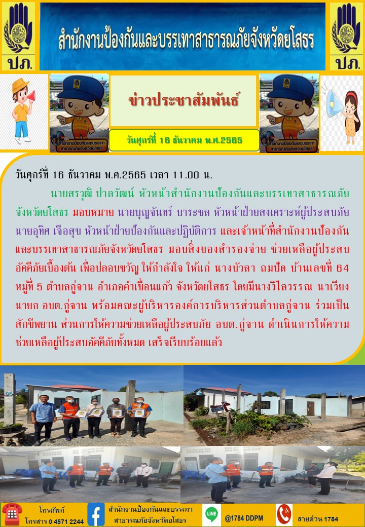 ผู้โพสต์ : [สำนักงานป้องกันและบรรเทาสาธารณภัยจังหวัดยโสธร] ทั่วไป