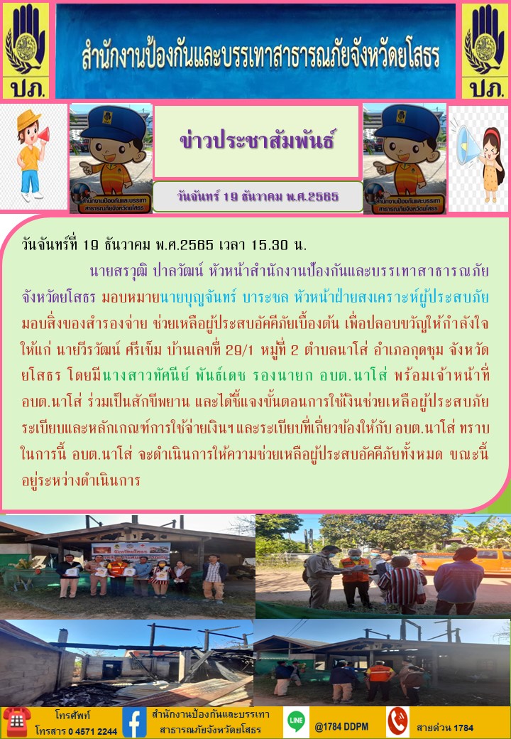 ผู้โพสต์ : [สำนักงานป้องกันและบรรเทาสาธารณภัยจังหวัดยโสธร] ทั่วไป