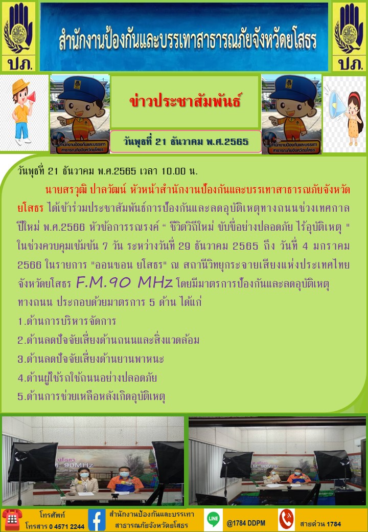 - [21:42] ทั่วไป ยโสธรลงพื้นที่เช็กคิวรถ ประเมินสถานการณ์เดินทางของประชาชน กำกับดูแล ไม่ให้มีการเอาเปรียบค่าโดยสารเด็ดขาด