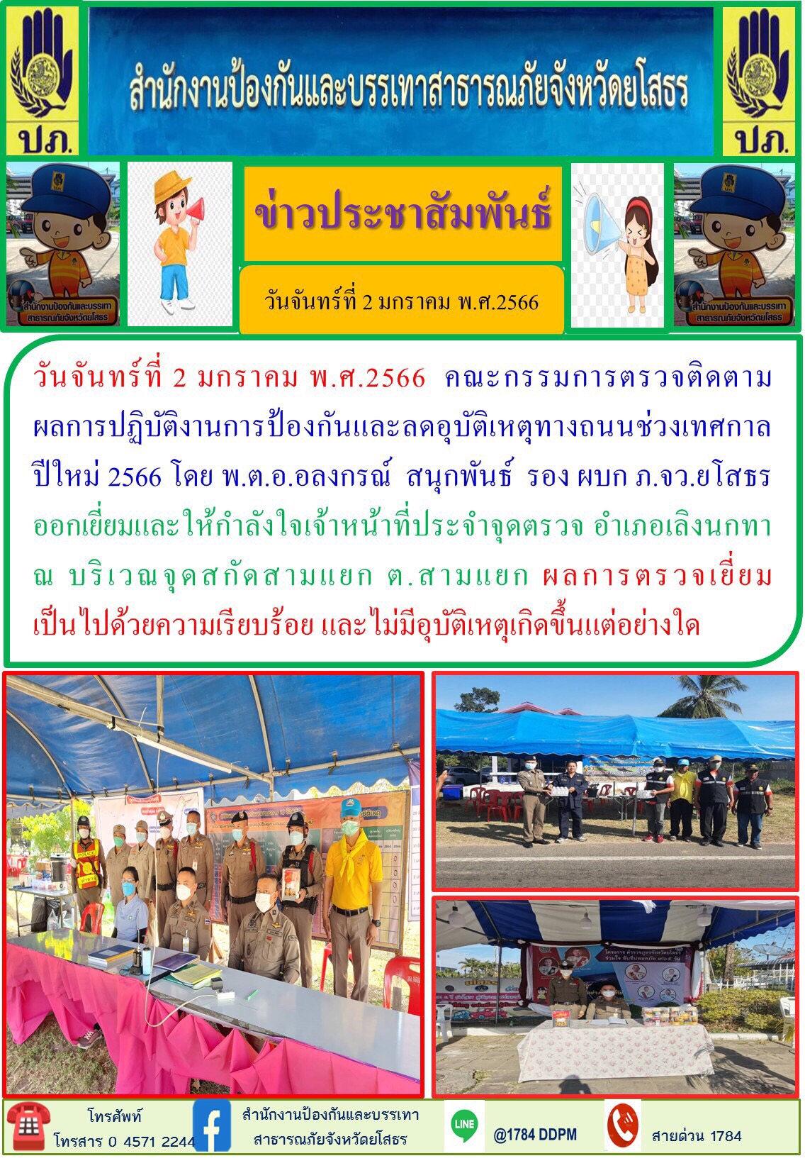 - [14:45] ทั่วไป ยโสธร ยกระดับมาตรการ 7 วันอันตรายสงกรานต์ 69 หลังประเดิมเหตุแรก พร้อมขอประชาชน ขับไม่ดื่ม ดื่มไม่ขับ และสวมหมวกนิรภัย