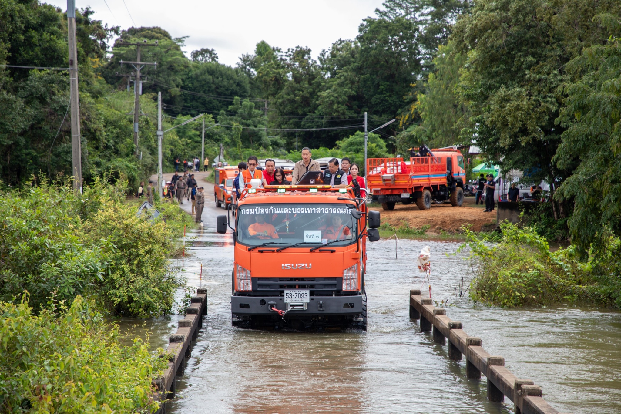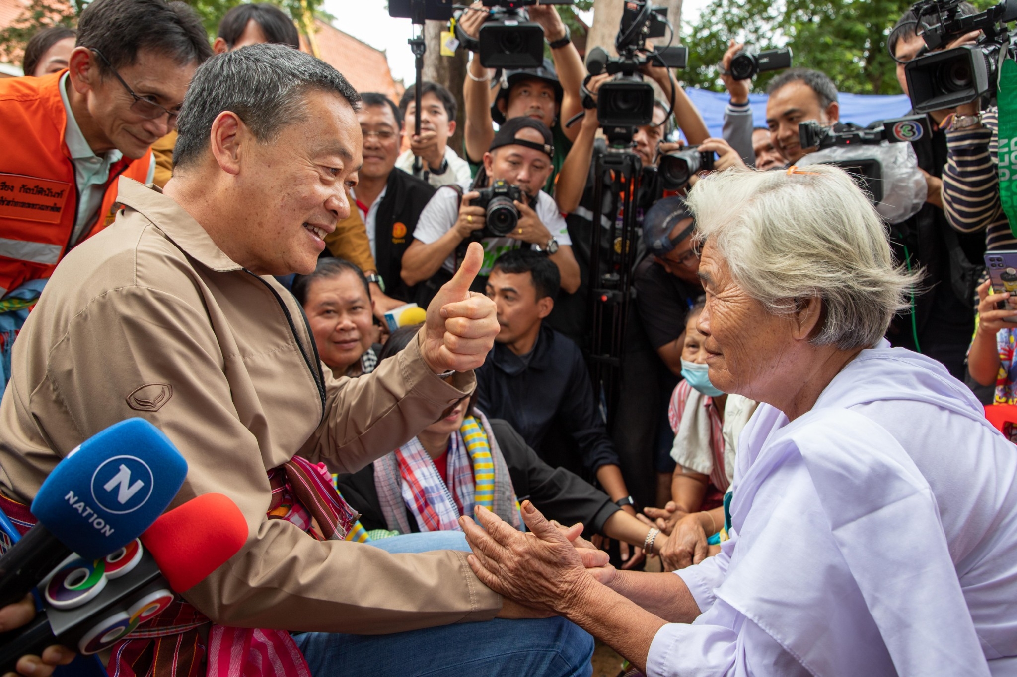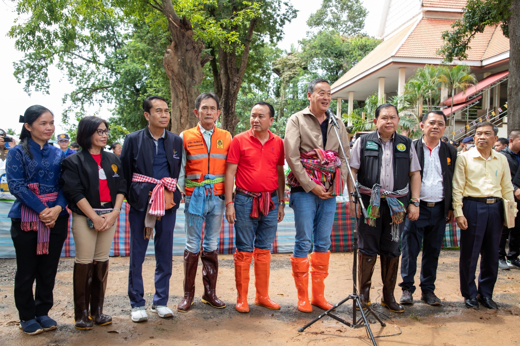 นายกรัฐมนตรี ลงพื้นที่ติดตามสถานการณ์น้ำท่วม และมอบสิ่งของช่วยเหลือผู้ประสบอุทกภัยในหมู่บ้าน ณ วัดทรายงาม บ้านทรายงาม หมู่ที่ 5 ตำบลกุดกุง อำเภอคำเขื่อนแก้ว จังหวัดยโสธร