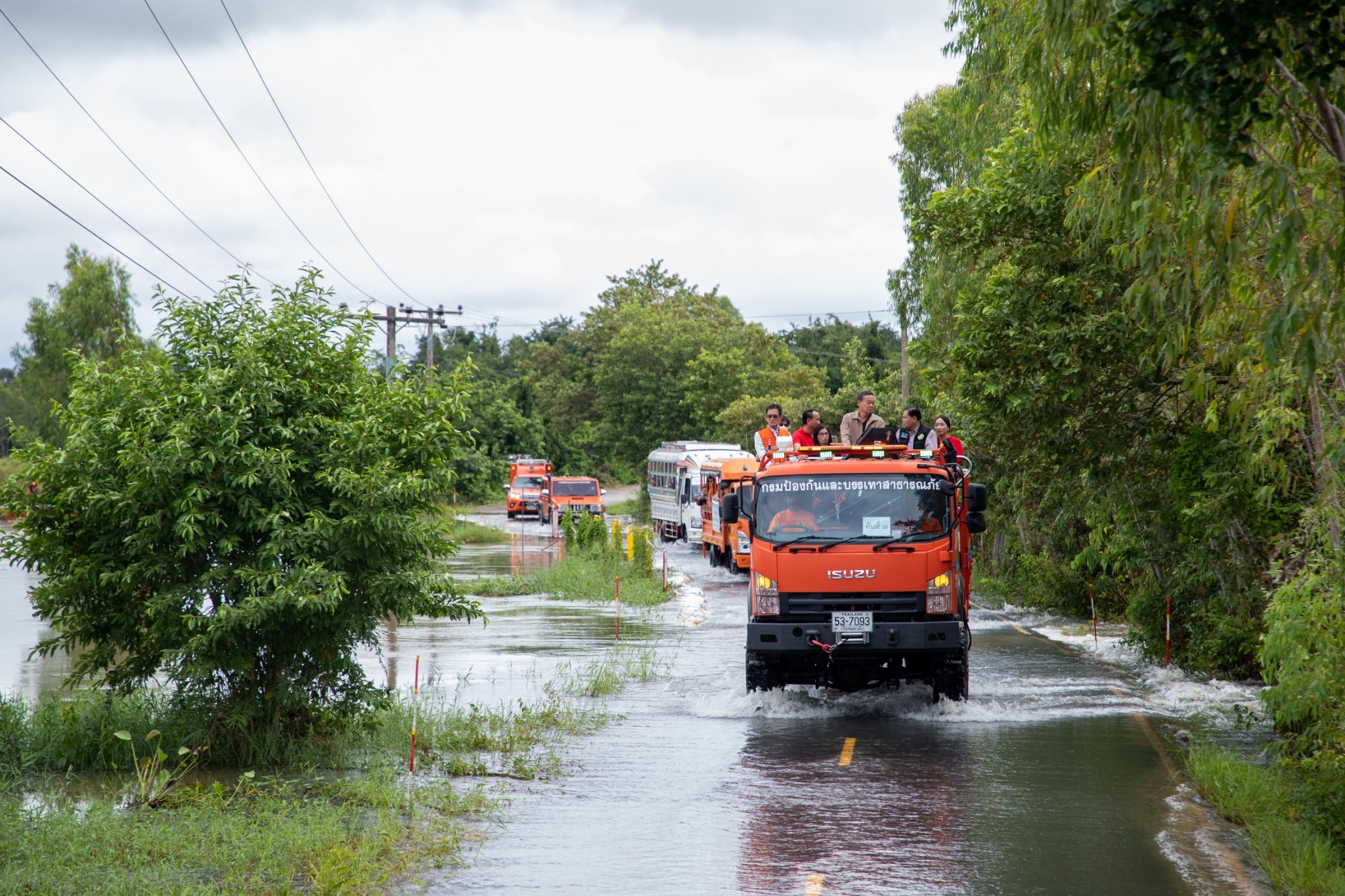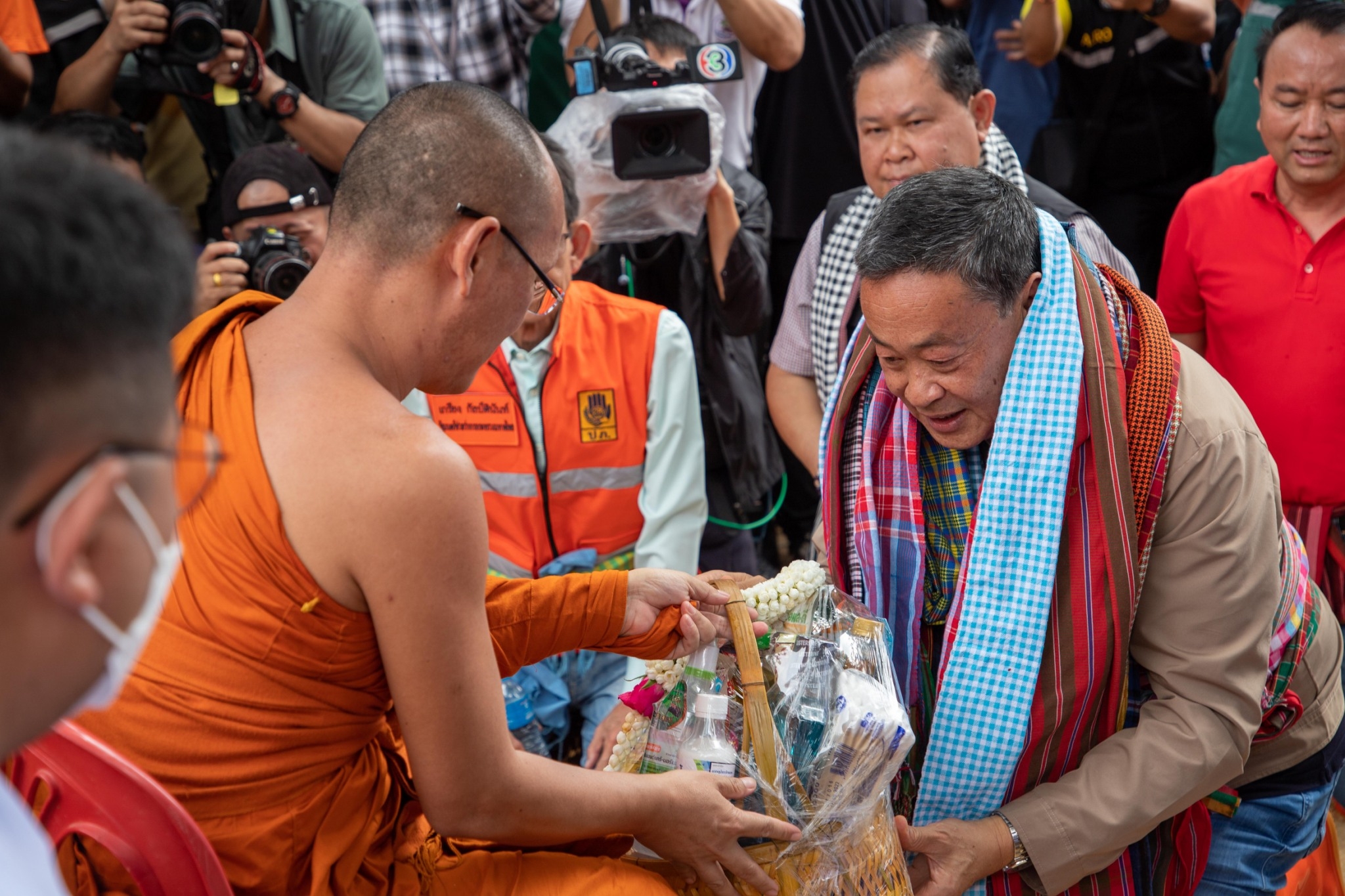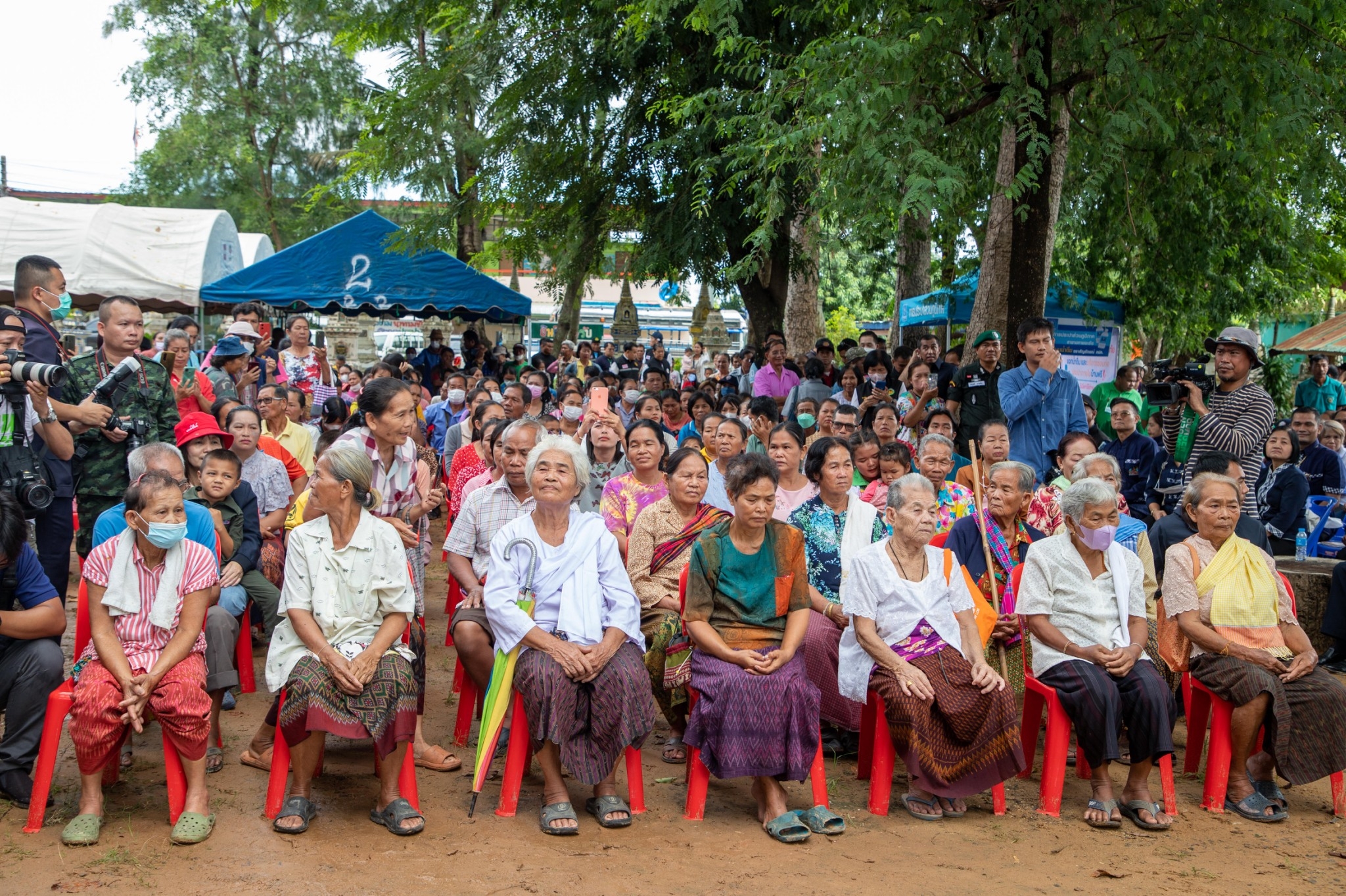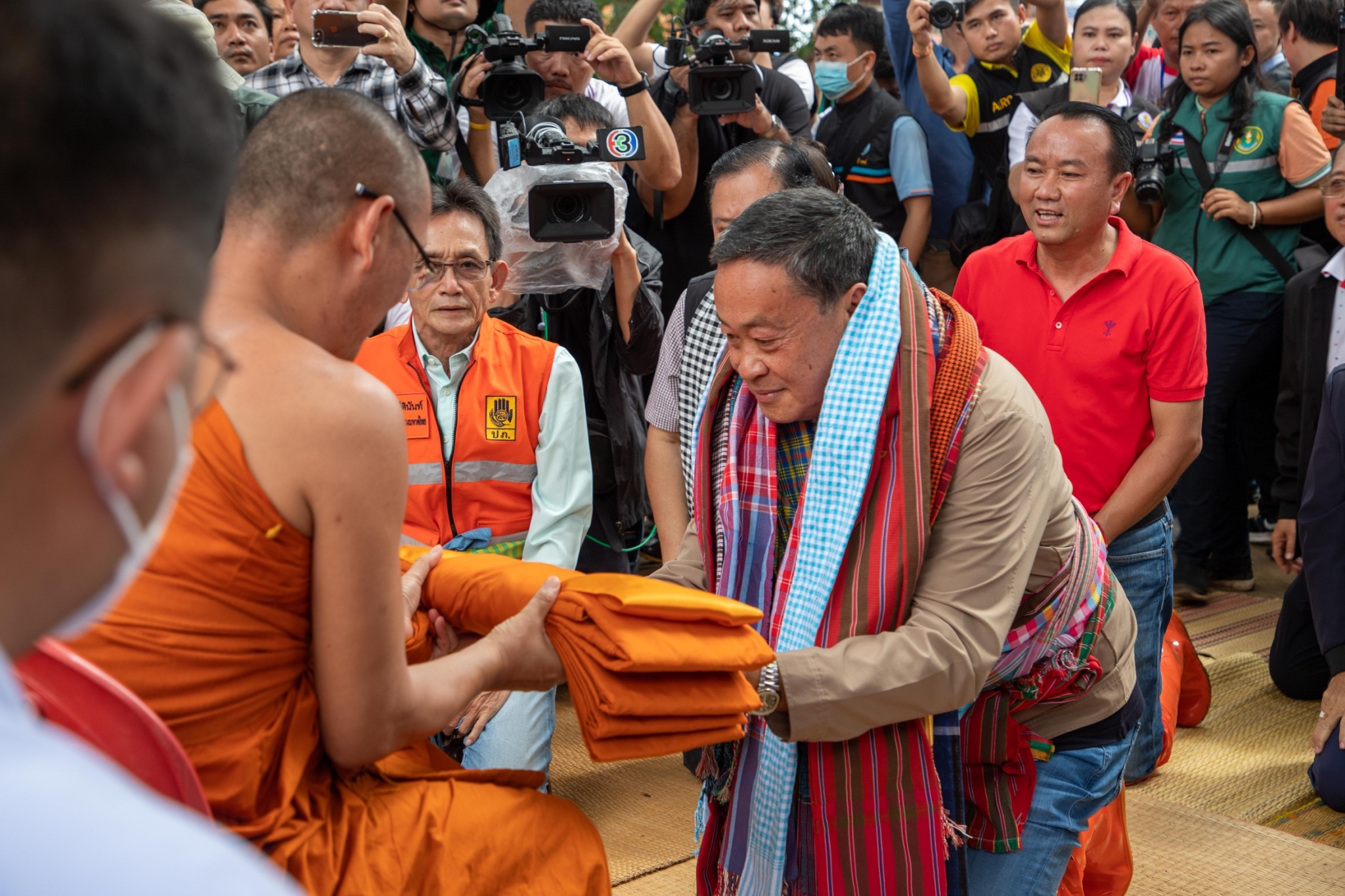 นายกรัฐมนตรี ลงพื้นที่ติดตามสถานการณ์น้ำท่วม และมอบสิ่งของช่วยเหลือผู้ประสบอุทกภัยในหมู่บ้าน ณ วัดทรายงาม บ้านทรายงาม หมู่ที่ 5 ตำบลกุดกุง อำเภอคำเขื่อนแก้ว จังหวัดยโสธร