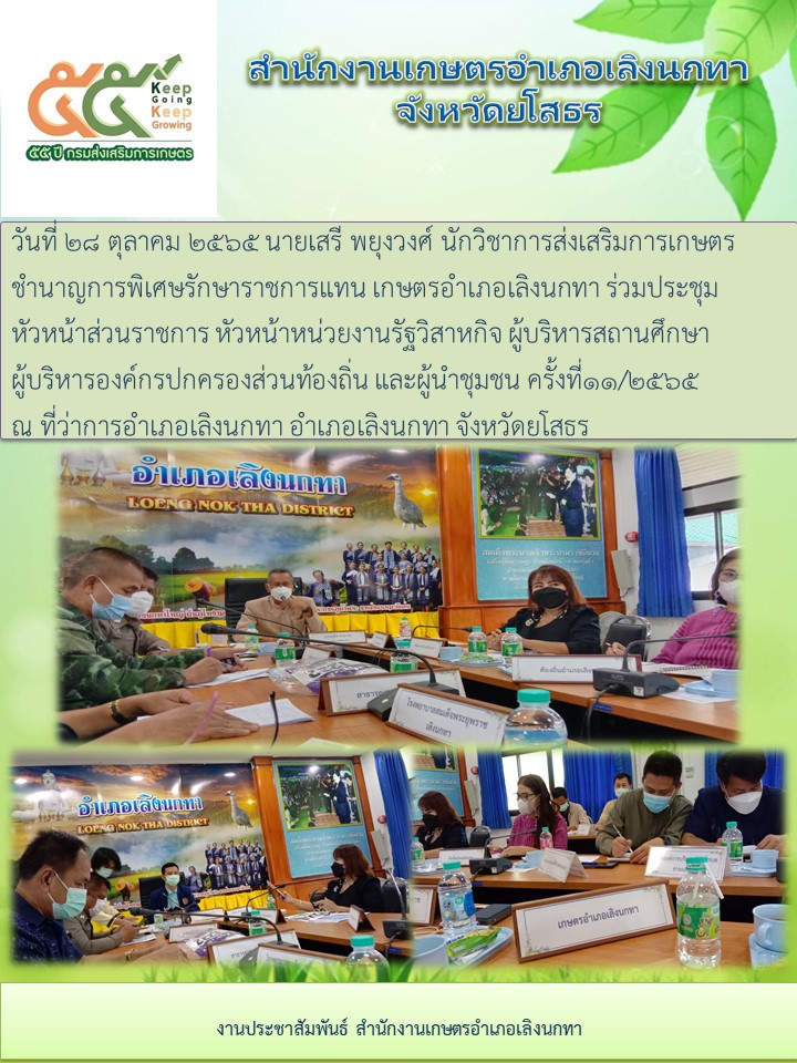 เกษตรอำเภอเลิงนกทา ร่วมประชุมหัวหน้าส่วนราชการ