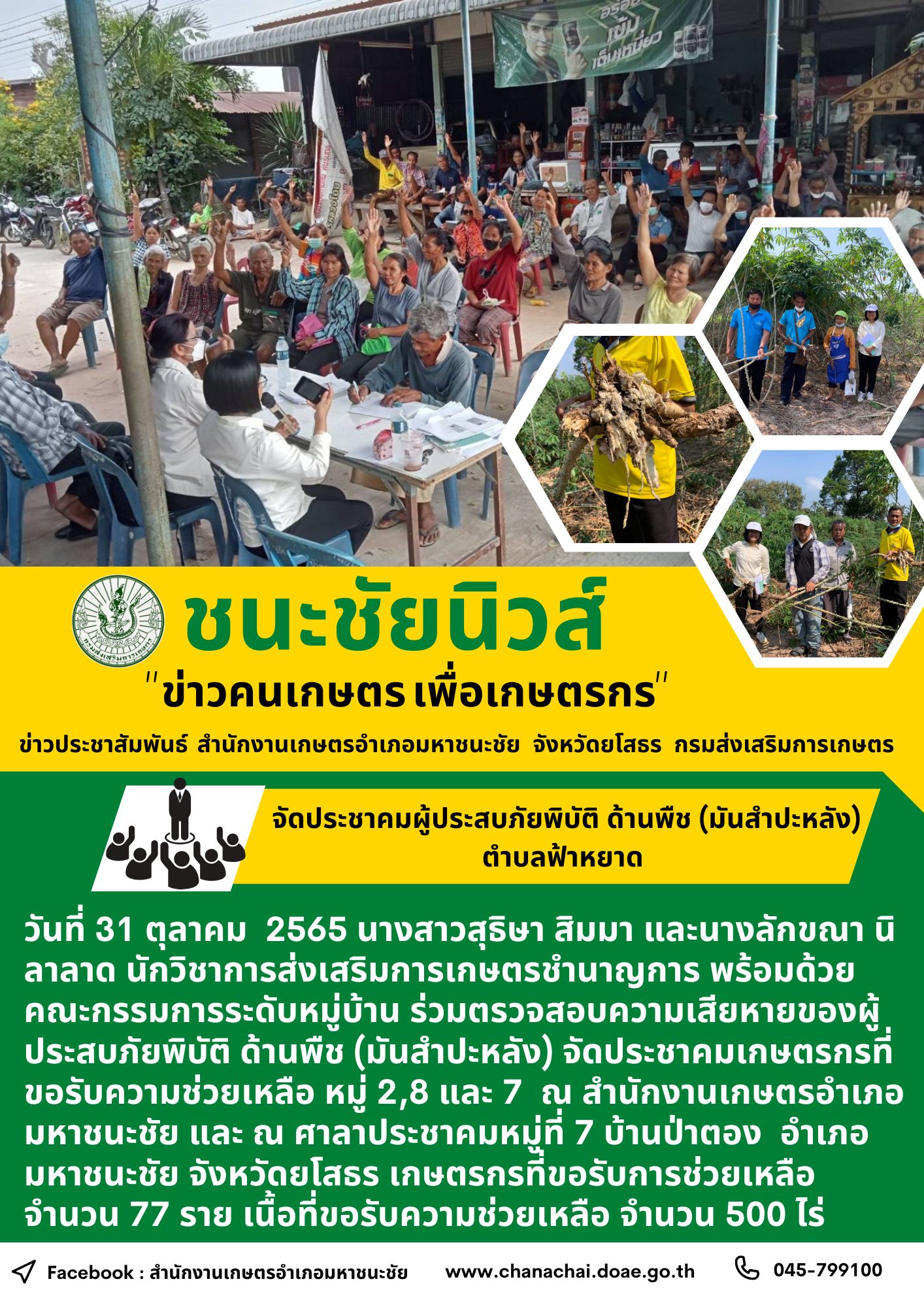 เกษตรอำเภอมหาชนะชัย จัดประชาคมผู้ประสบภัยพิบัติด้านพืช ตำบลฟ้าหยาด