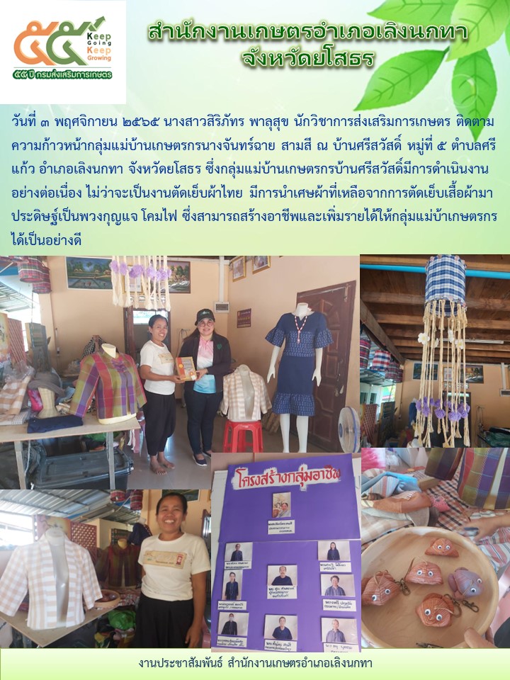 เกษตรอำเภอเลิงนกทา ติดตามการดำเนินงานกลุ่มแม่บ้านเกษตรกร