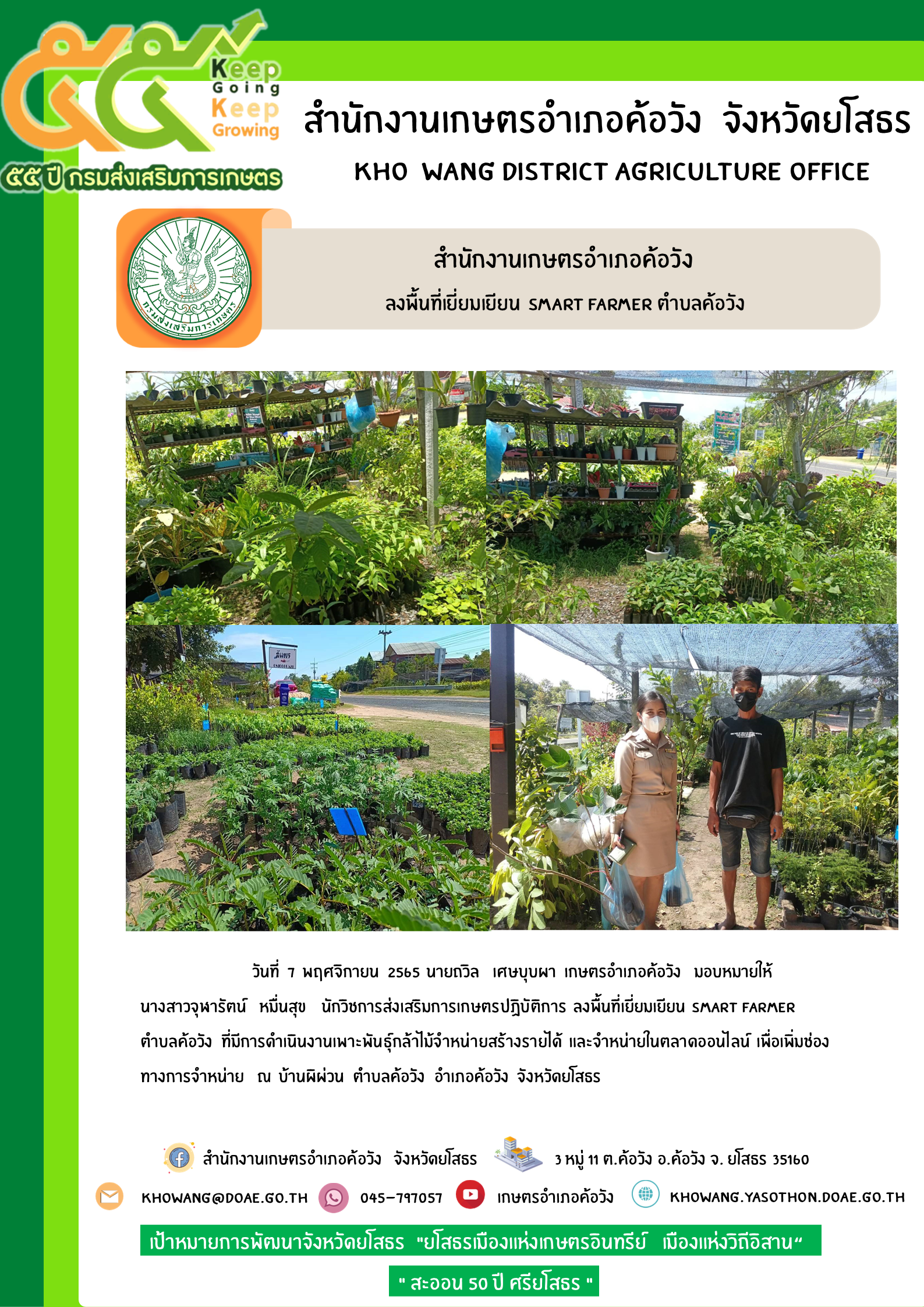เกษตรอำเภอค้อวัง ลงพื้นที่เยี่ยม Smart Farmer ตำบลค้อวัง