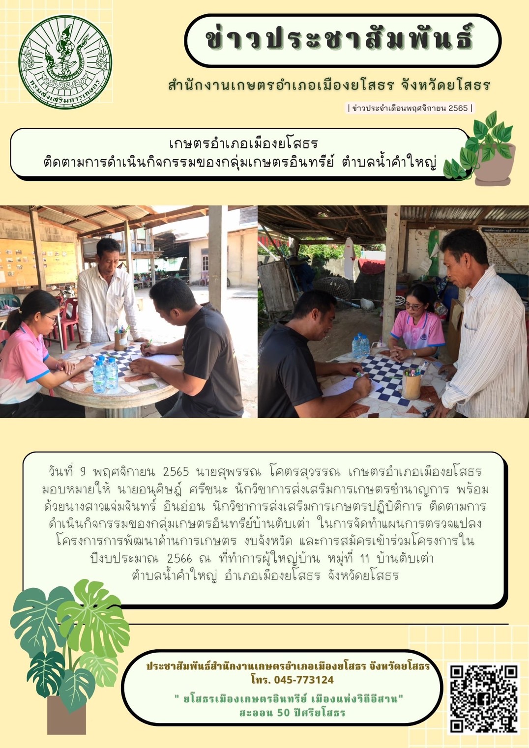 เกษตรอำเภอเมืองยโสธร ติดตามการดำเนินงานกลุ่มเกษตรอินทรีย์ ตำบลน้ำคำใหญ่