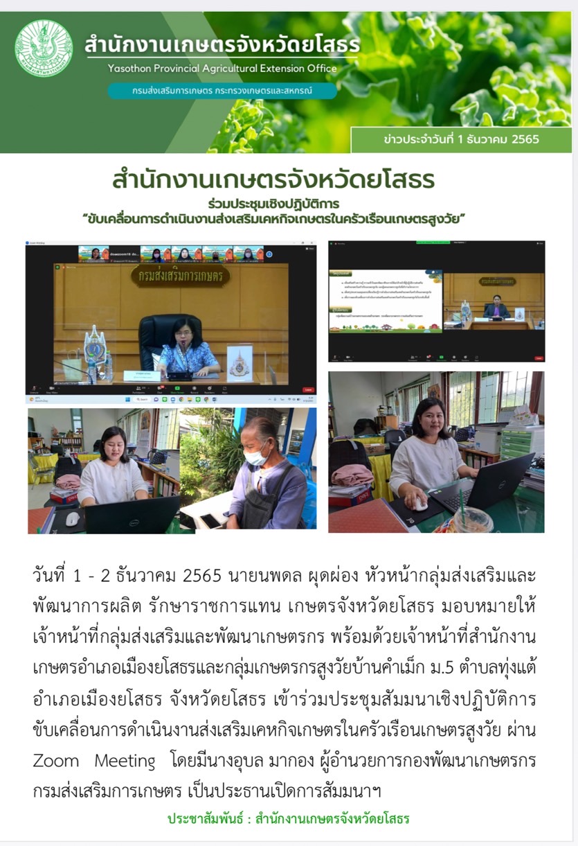 เกษตรจังหวัดยโสธร ร่วมประชุมเชิงปฏิบัติการ ขับเคลื่อนการดำเนินงานส่งเสริมเคหกิจเกษตรในครัวเรือนเกษตรสูงวัย