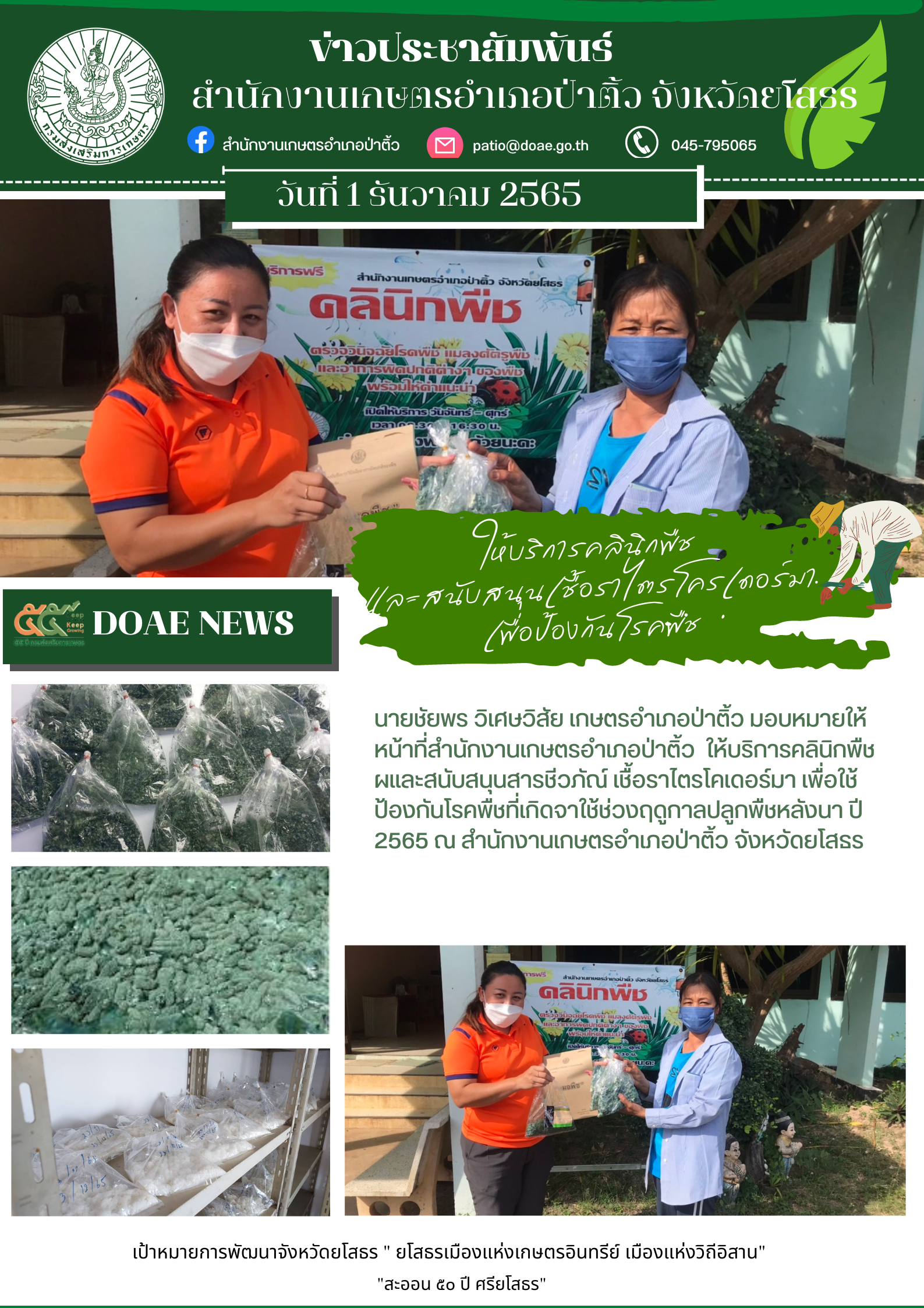 เกษตรอำเภอป่าติ้ว ให้บริการคลินิกพืช ให้การสนับสนุนเชื้อราไตรโครเดอร์มาเพื่อป้องกันโรคพืช