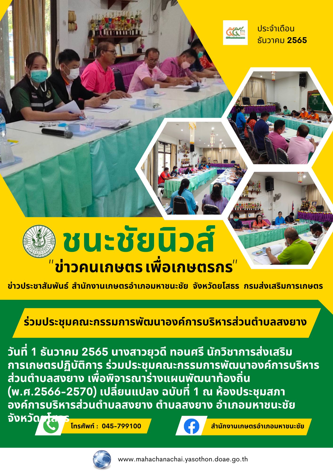 เกษตรอำเภอมหาชนะชัย ร่วมประชุมคณะกรรมการพัฒนาองค์การบริหารส่งนตำบลสงยาง