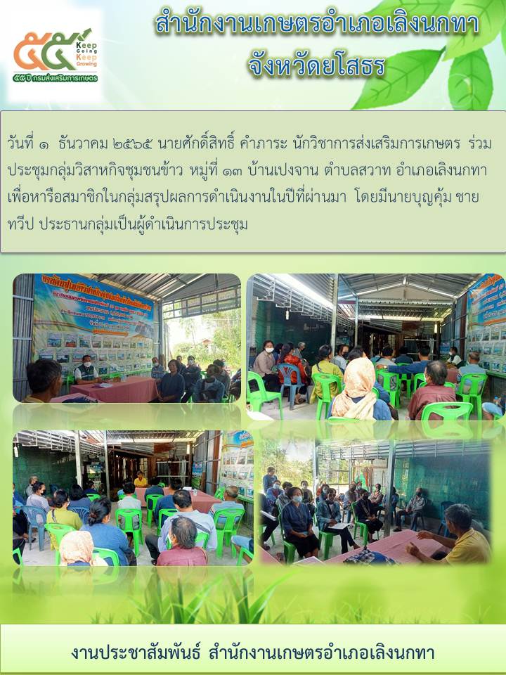เกษตรอำเภอเลิงนกทา ร่วมประชุมกลุ่มวิสาหกิจชุมชนข้าว