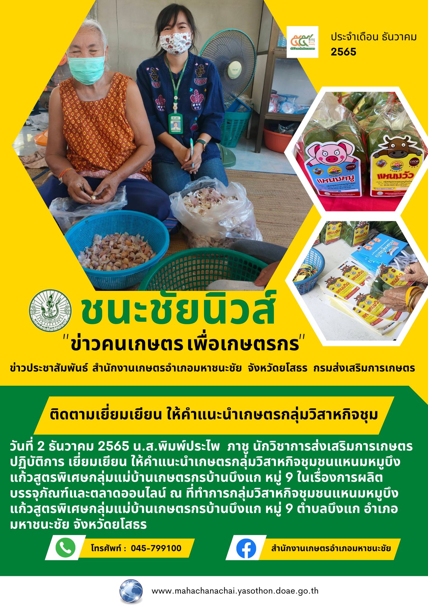 เกษตรอำเภอมหาชนะชัย ติดตามให้คำแนะนำเกษตรกรกลุ่มวิสาหกิจชุมชน