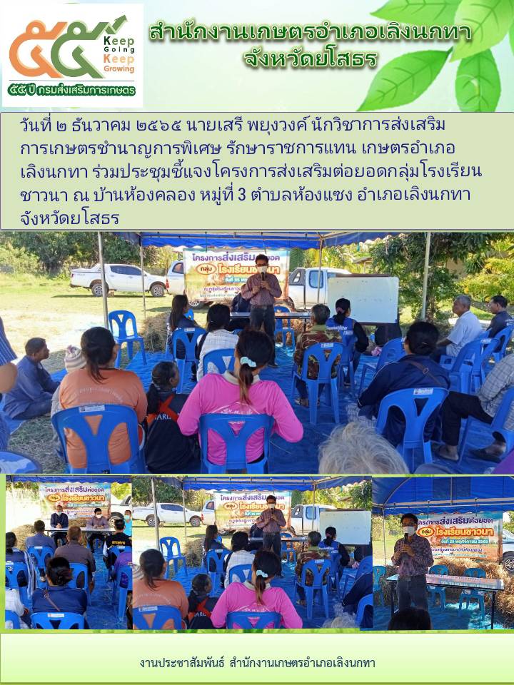 เกษตรอำเภอเลิงนกทา ร่วมประชุมชี้แจงโครงการส่งเสริมต่อยอดกลุ่มโรงเรียนชาวนา