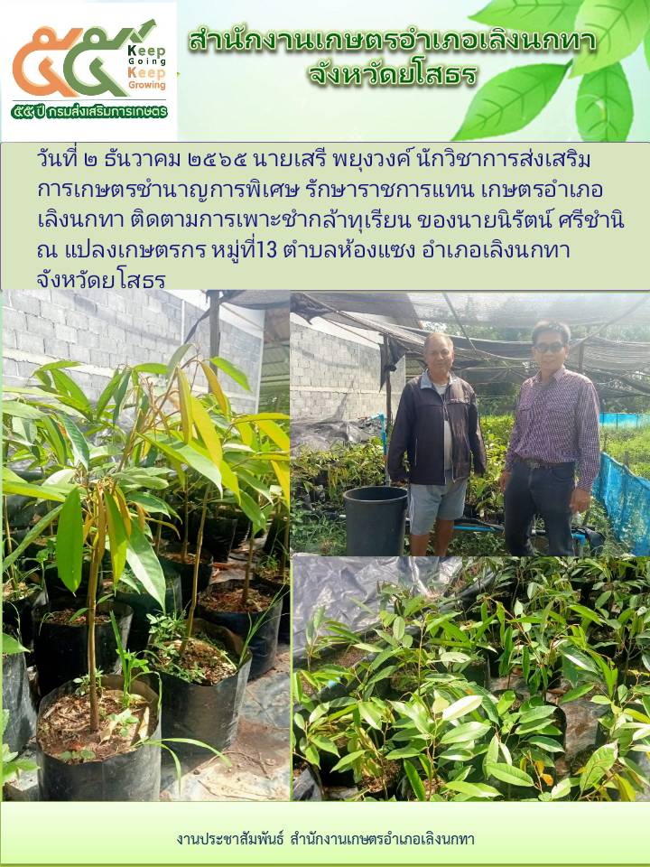 เกษตรอำเภอเลิงนกทา ติดตามการเพาะชำกล้าทุเรียน