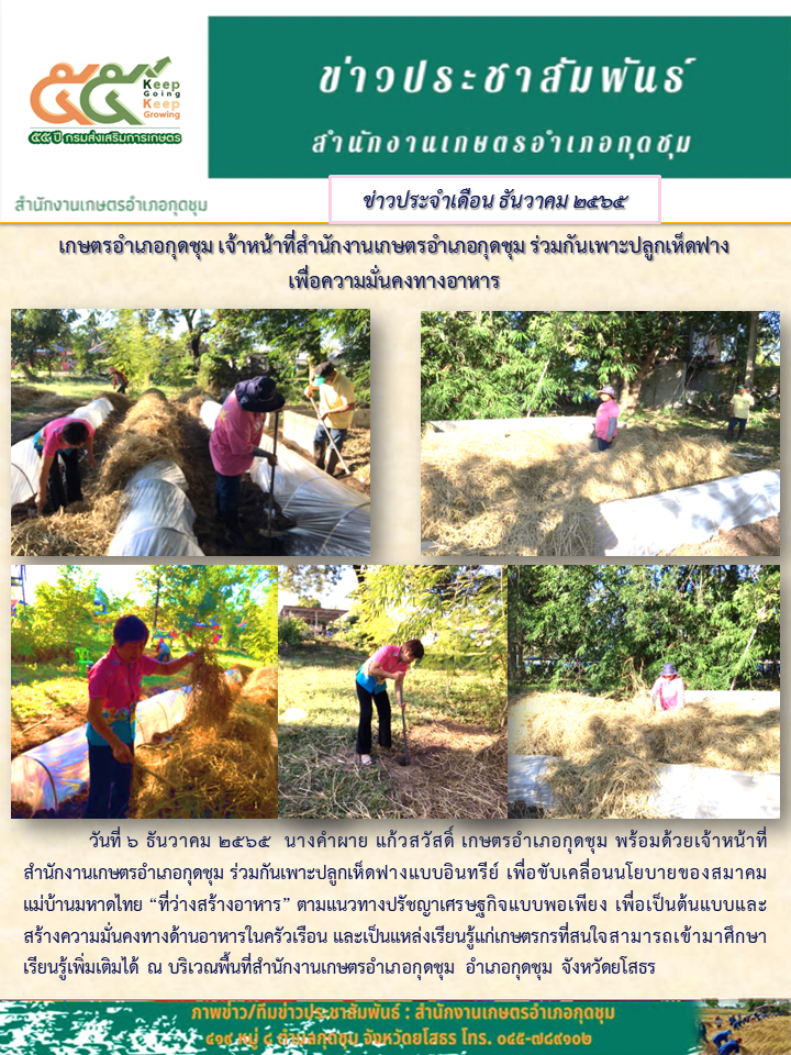 เกษตรอำเภอกุดชุม ร่วมกันเพาะปลูกเห็ดฟางเพื่อความมั่นคงทางอาหาร