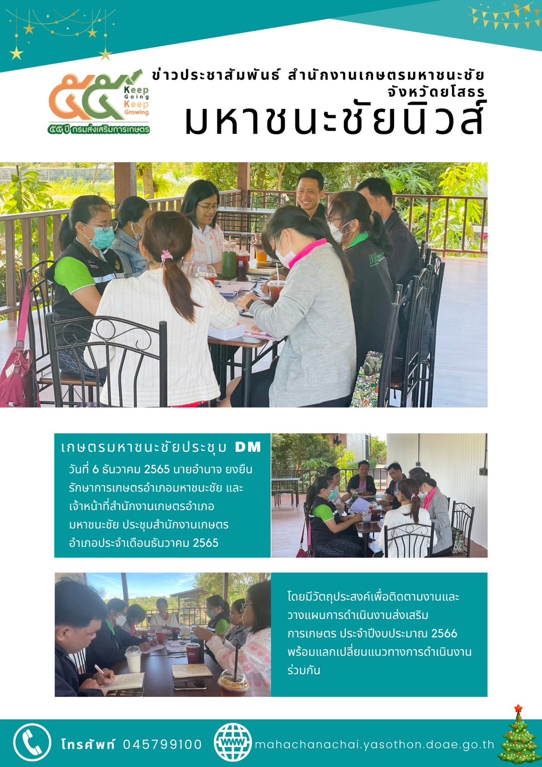 เกษตรอำเภอมหาชนะชัย ประชุมสำนักงานเกษตรอำเภอประจำเดือนธันวาคม 2565
