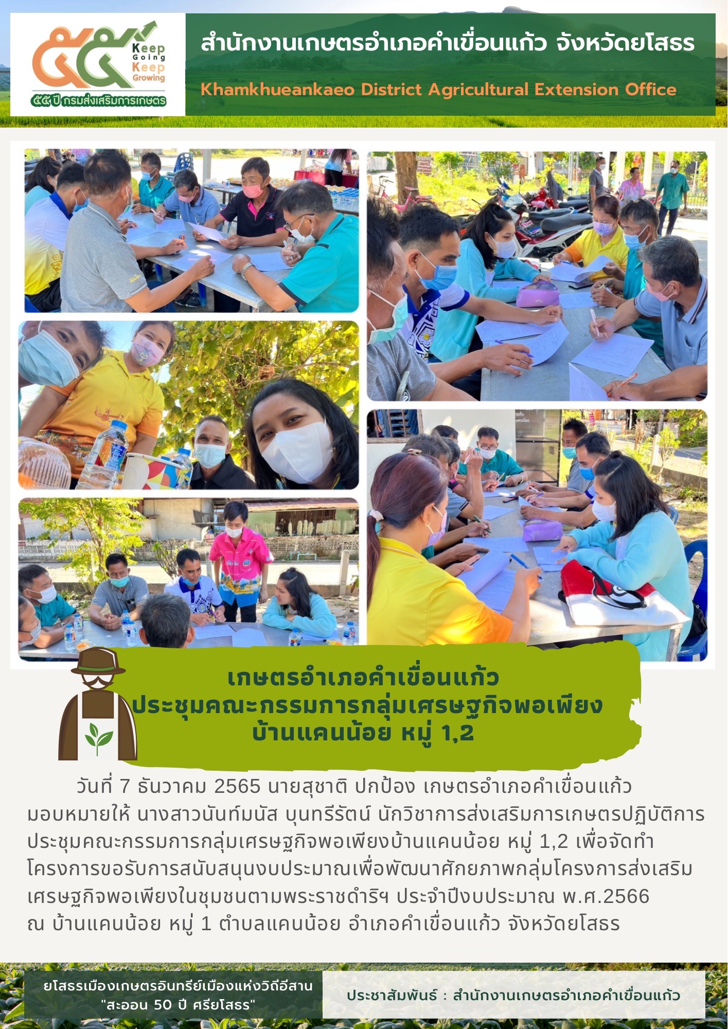เกษตรอำเภอคำเขื่อนแก้ว ร่วมประชุมคณะกรรมการกลุ่มเศรษฐกิจพอเพียง