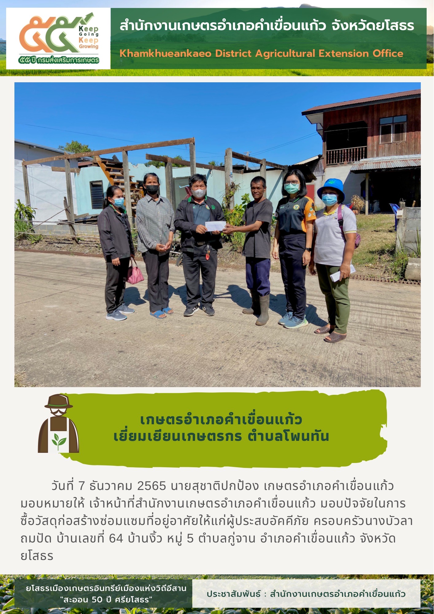 เกษตรอำเภอคำเขื่อนแก้ว ลงพื้นที่เยี่ยมเยียนเกษตรกร