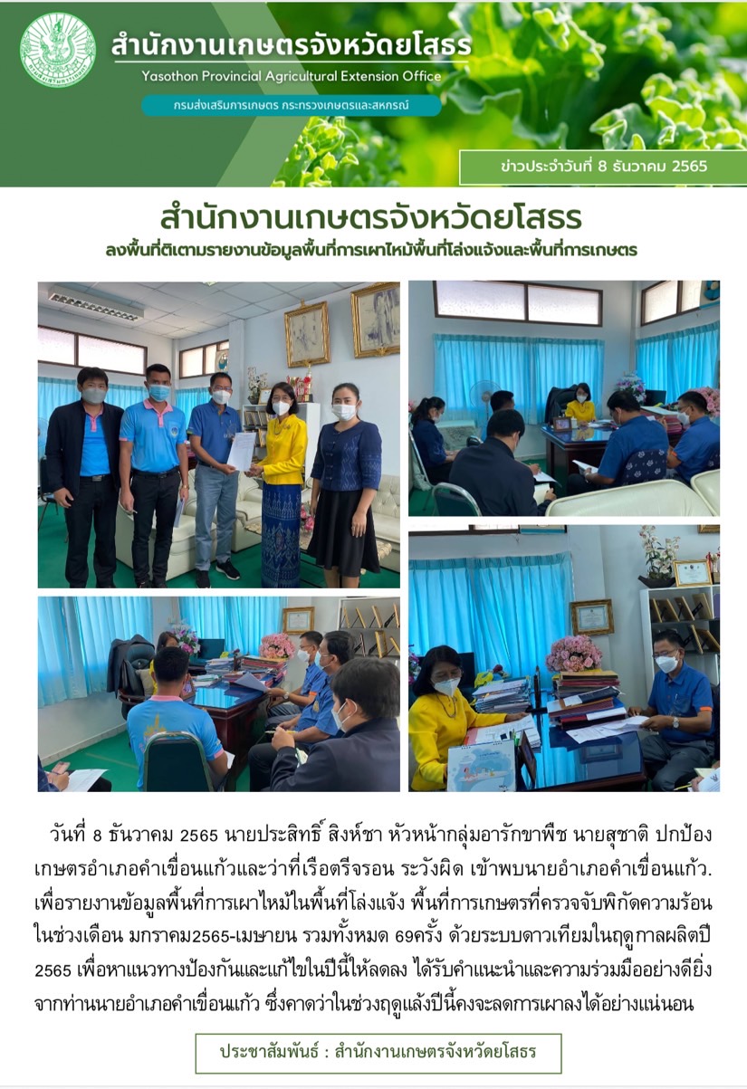 เกษตรจังหวัดยโสธร ลงพื้นที่ติดตามรายงานข้อมูลพื้นที่การเผาไหม้พื้นที่โล่งแจ้งและพื้นที่การเกษตร