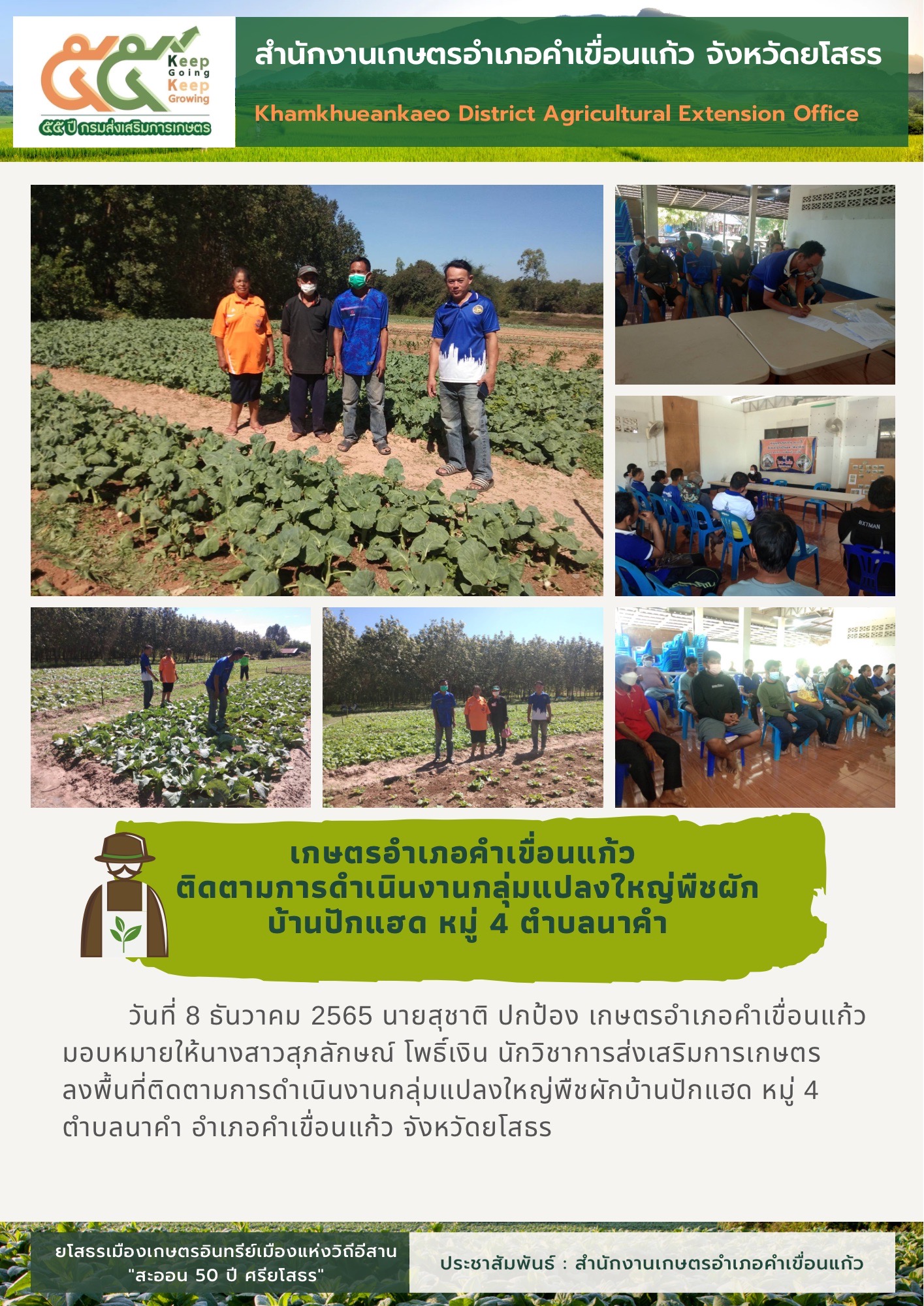 เกษตรอำเภอคำเขื่อนแก้ว ติดตามการดำเนินงานกลุ่มแปลงใหญ่